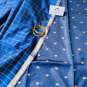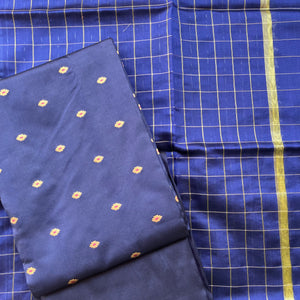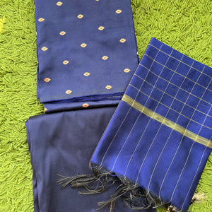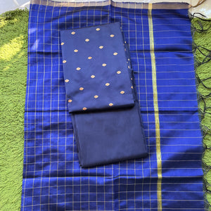Banarasi Unstitched Suit Fabric - Navy Blue
