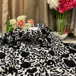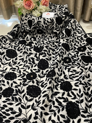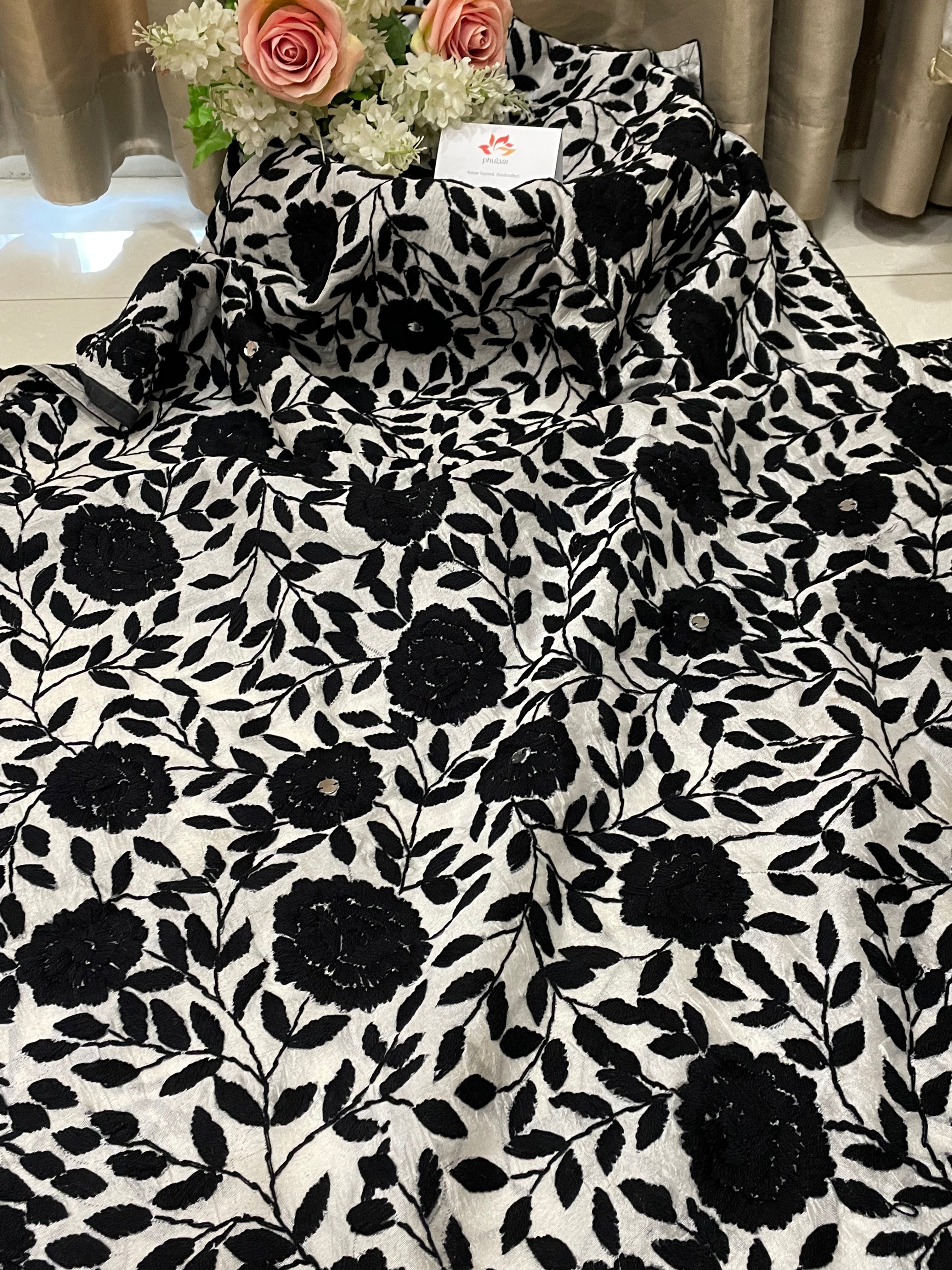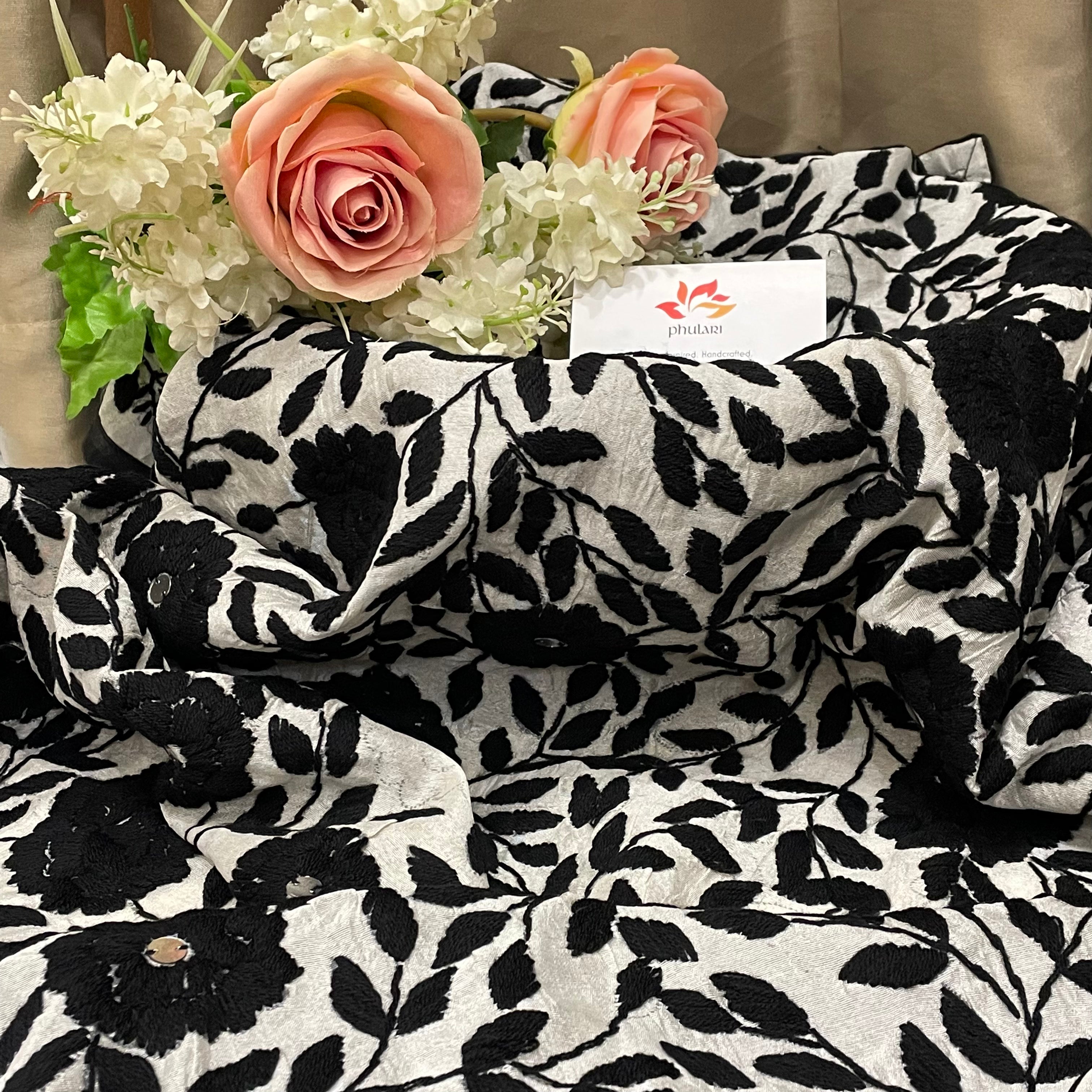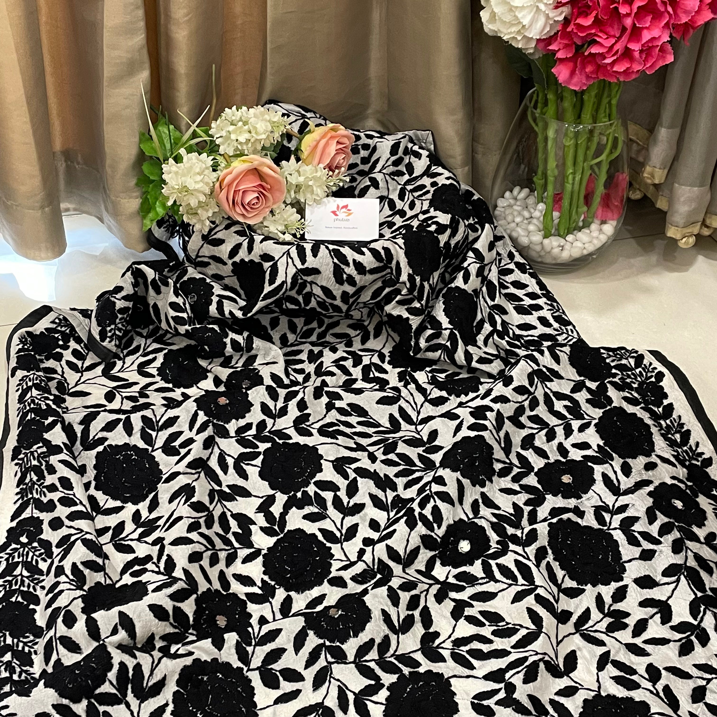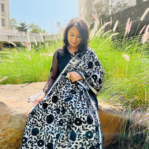 Hand-Embroidered Chanderi Dupatta- Black and White