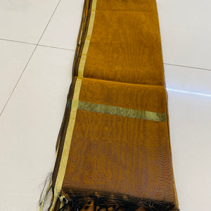 Chanderi Raw Silk Plain Dupatta With Gold Border - Brown