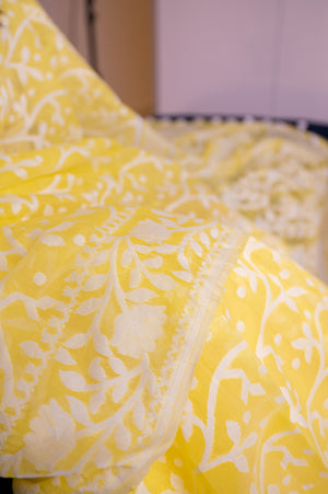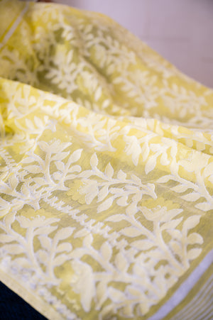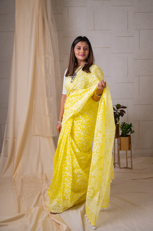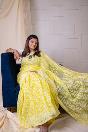 This eye-catching soft handloom jamdani saree is beautifully woven by the rural artisans. It is very comfortable, lightweight and elegant. The colors are so pleasing and attractive, that sporting it for a traditional event or formal function will be perfect.