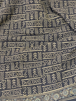 This is a beautiful cotton saree with all over ajrak hand-block print. It is easy to carry and comfortable. Just add a pair of silver earrings and bangles and you ready to stun everyone around you.