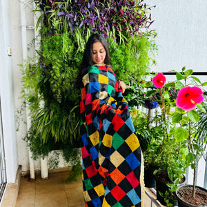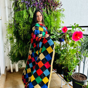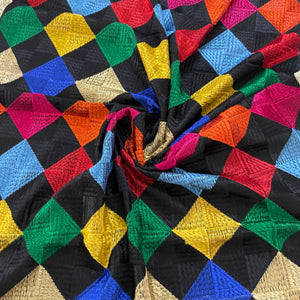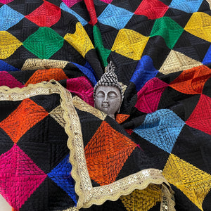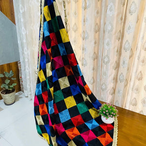 This Chinnon Machine- embroidered phulkari dupatta is an ideal choice for all traditional and festive occasions. It has a black base with multi coloured Machine embroidered on the dupatta. Pair with your ethnic outfit.