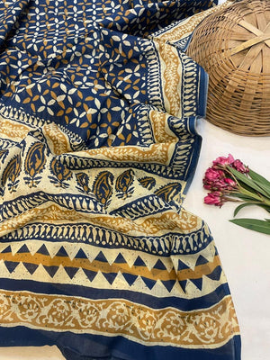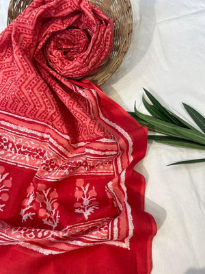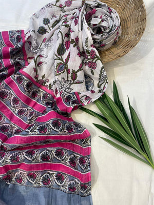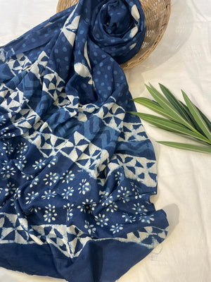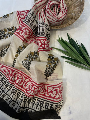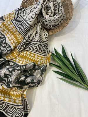This cotton hand block mul dupatta is the perfect accessory for every occasion. The fabric is hand-printed with various motifs using natural dyes.