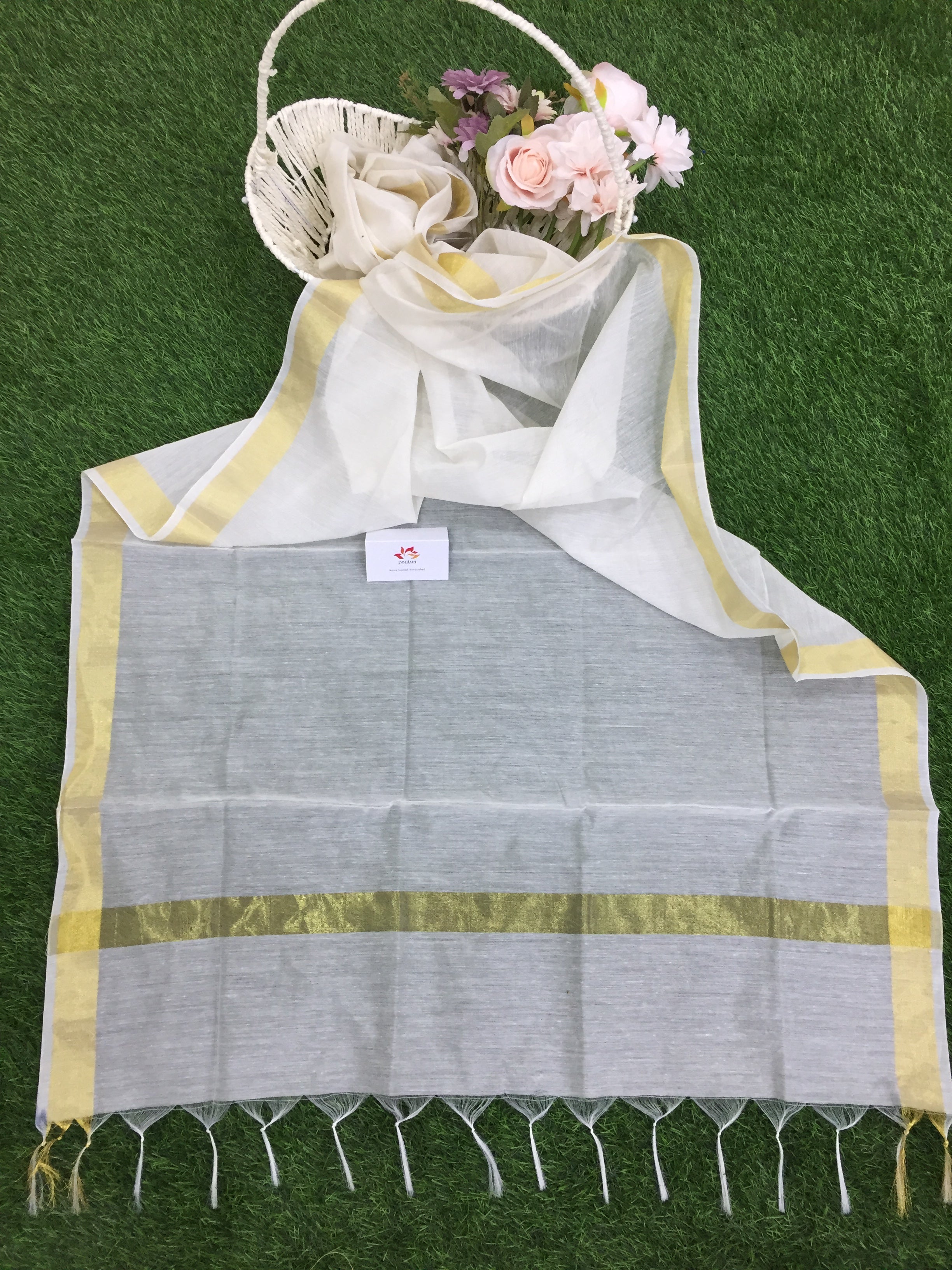 Cotton Silk Dupatta With Zari Border - Various Colors 1