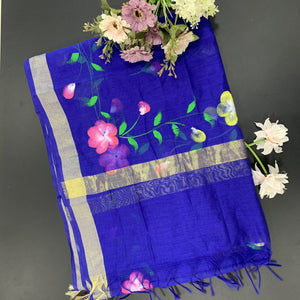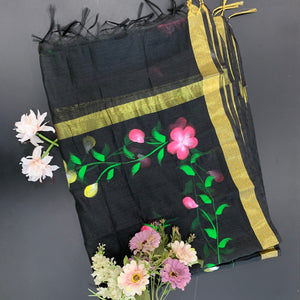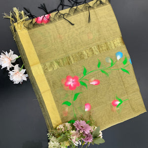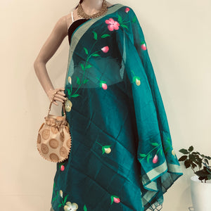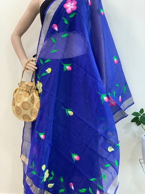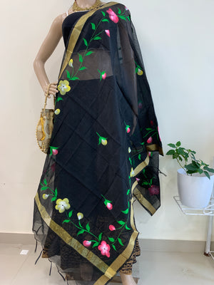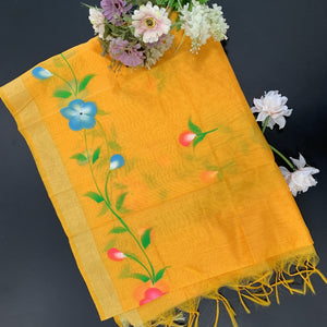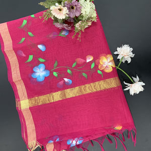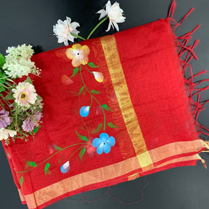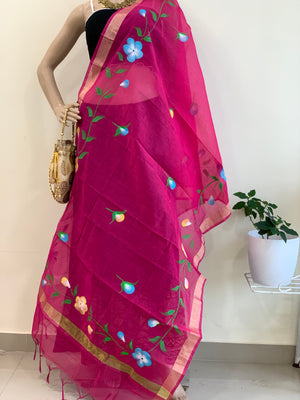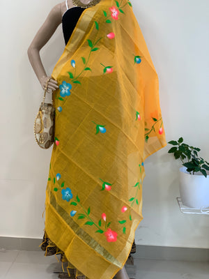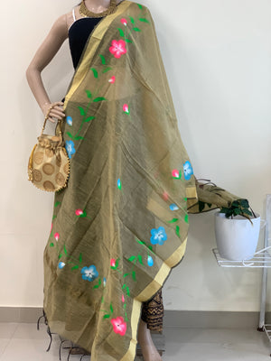 Hand-painted Cotton Silk Dupatta - Floral Border