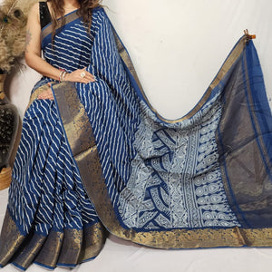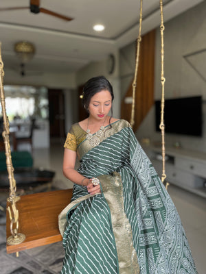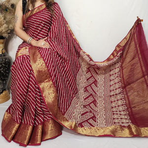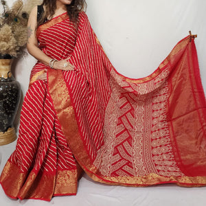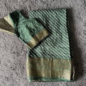 Dola Silk With Leheriya Print- Bottle Green, Red, Hot Pink, Rani Pink, Blue