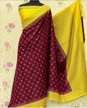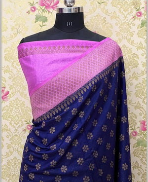 Dupion Silk Banarasi Saree - Navy Bluw, Pink, Green, Maroon and more