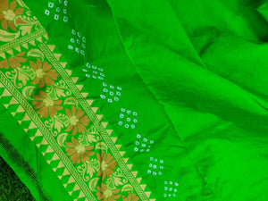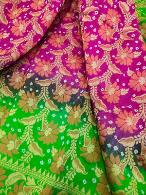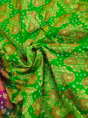 Dupion Silk Banarasi Weave with Bandhani Saree - Green and Pink