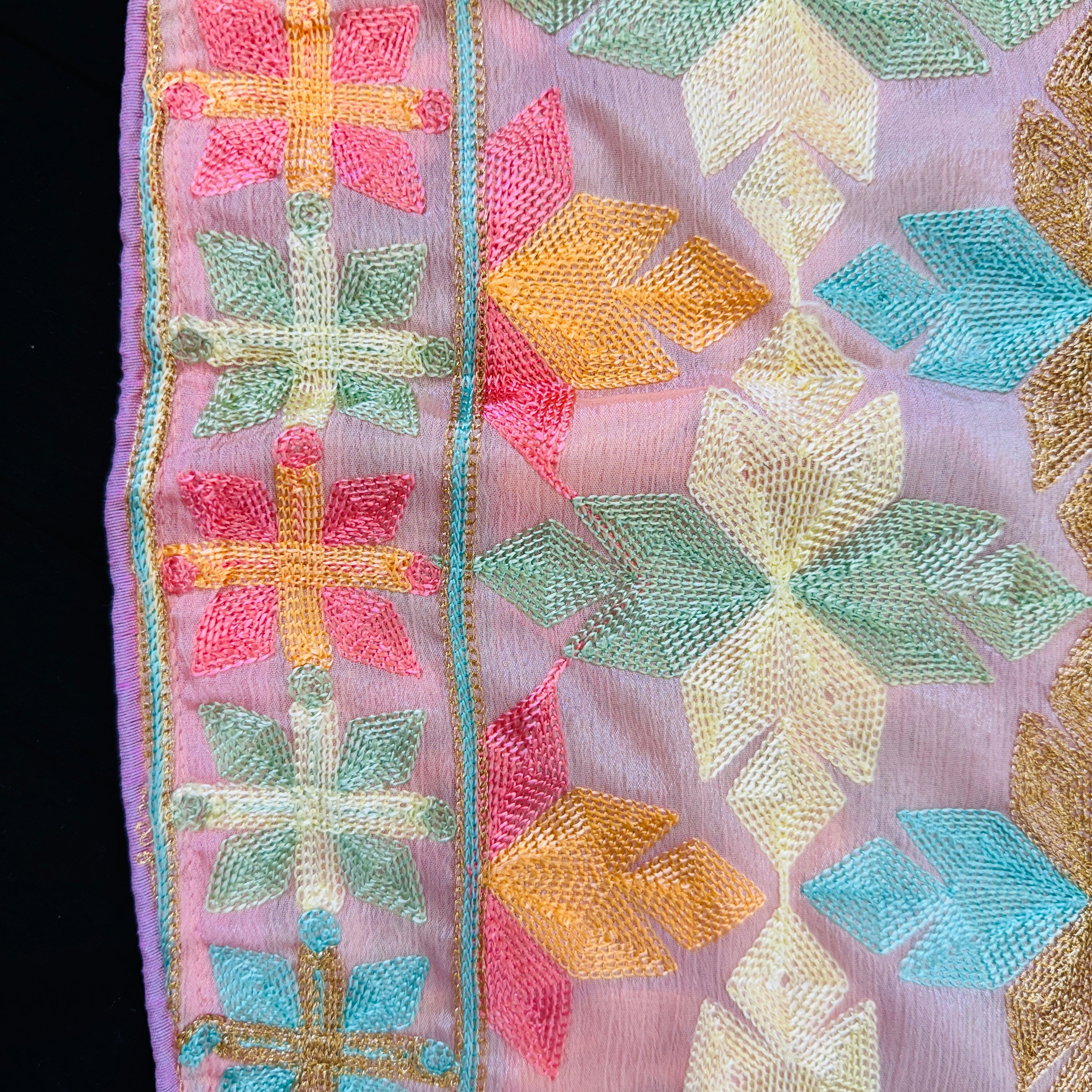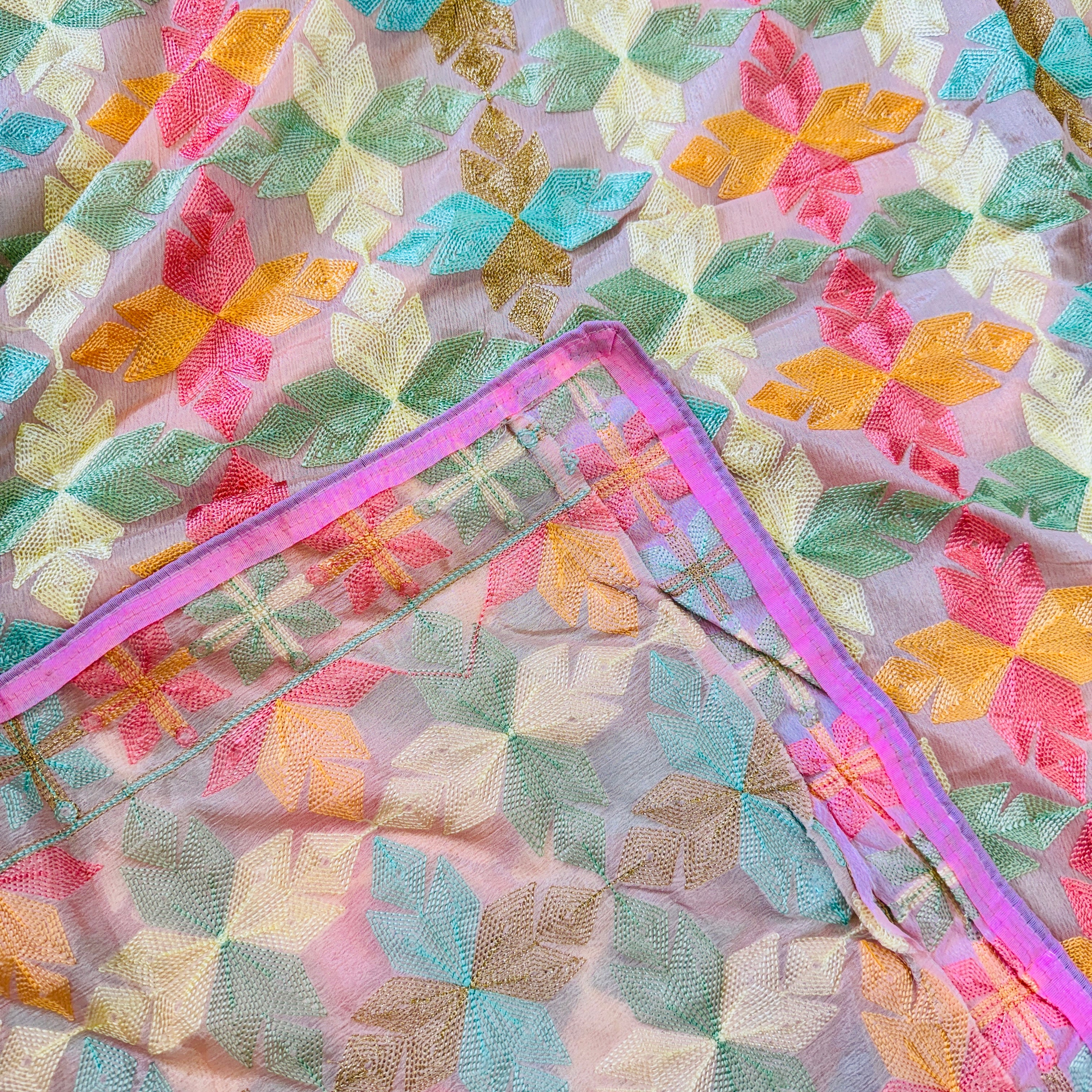 Phulkari Chinnon Dupatta - Onion Pink Multicolour
