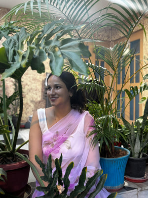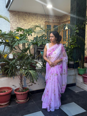 Floral Printed Chiffon Saree - Pink, Blue, Peach
