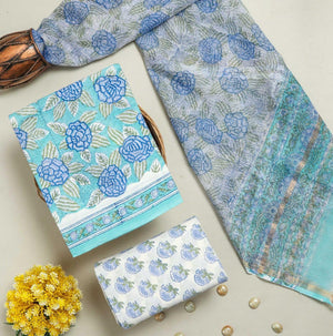 Hand block printed full kota Doriya 3 Piece unstitched Suit Materials Colors