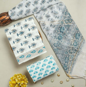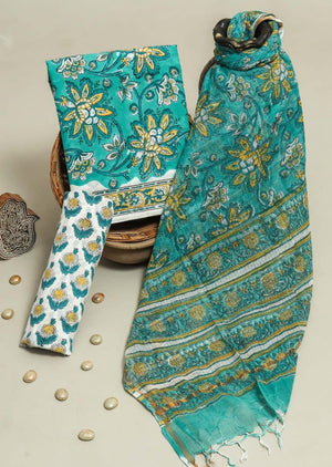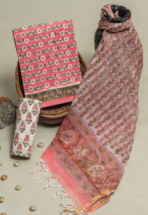 Hand block printed full kota Doriya 3 Piece unstitched Suit Materials Mix Colors