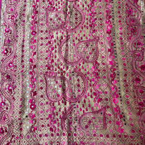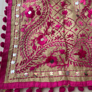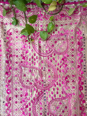 Hand-Embroidered Chanderi Dupatta- Beige With Pink Threadwork