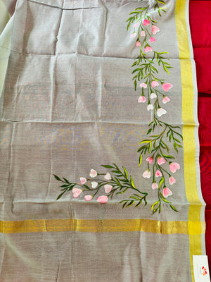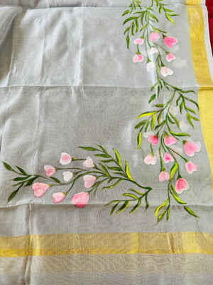Hand Painted Chanderi Silk Dupatta with Floral Bunches