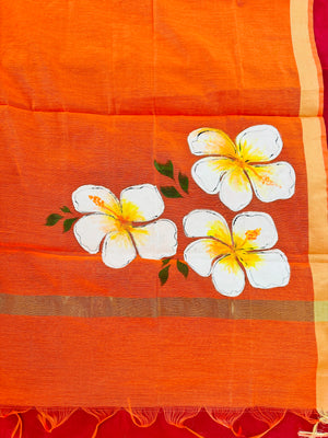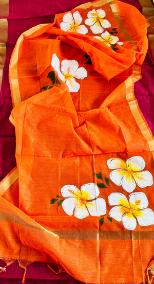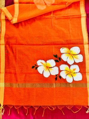 Hand Painted Chanderi Silk Dupatta with Floral Design