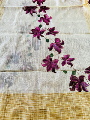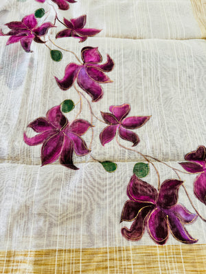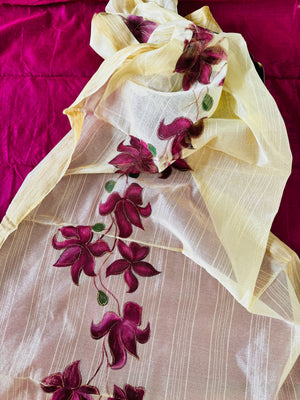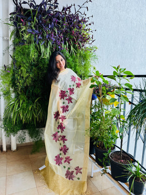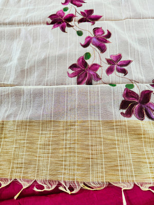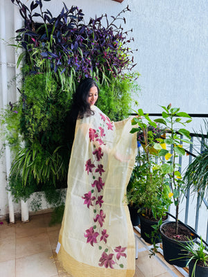 Hand Painted Flower Motifs Dupatta on Kheeja Cotton