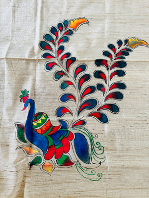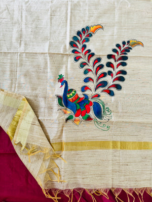 Hand Painted Peacock Motifs on Chanderi Silk Dupatta