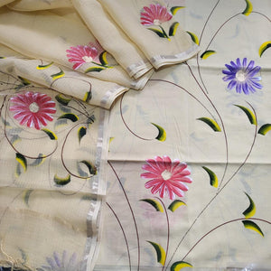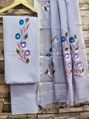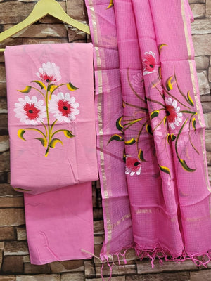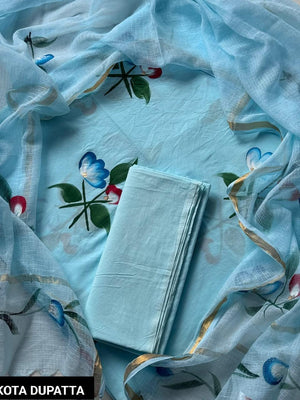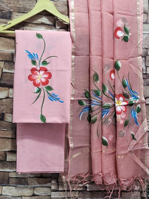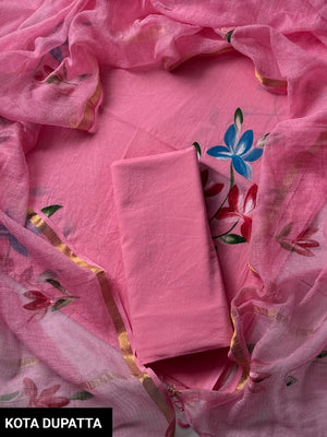 This Hand painted Suit materials with Kota Doria Dupatta is beautifully hand painted