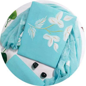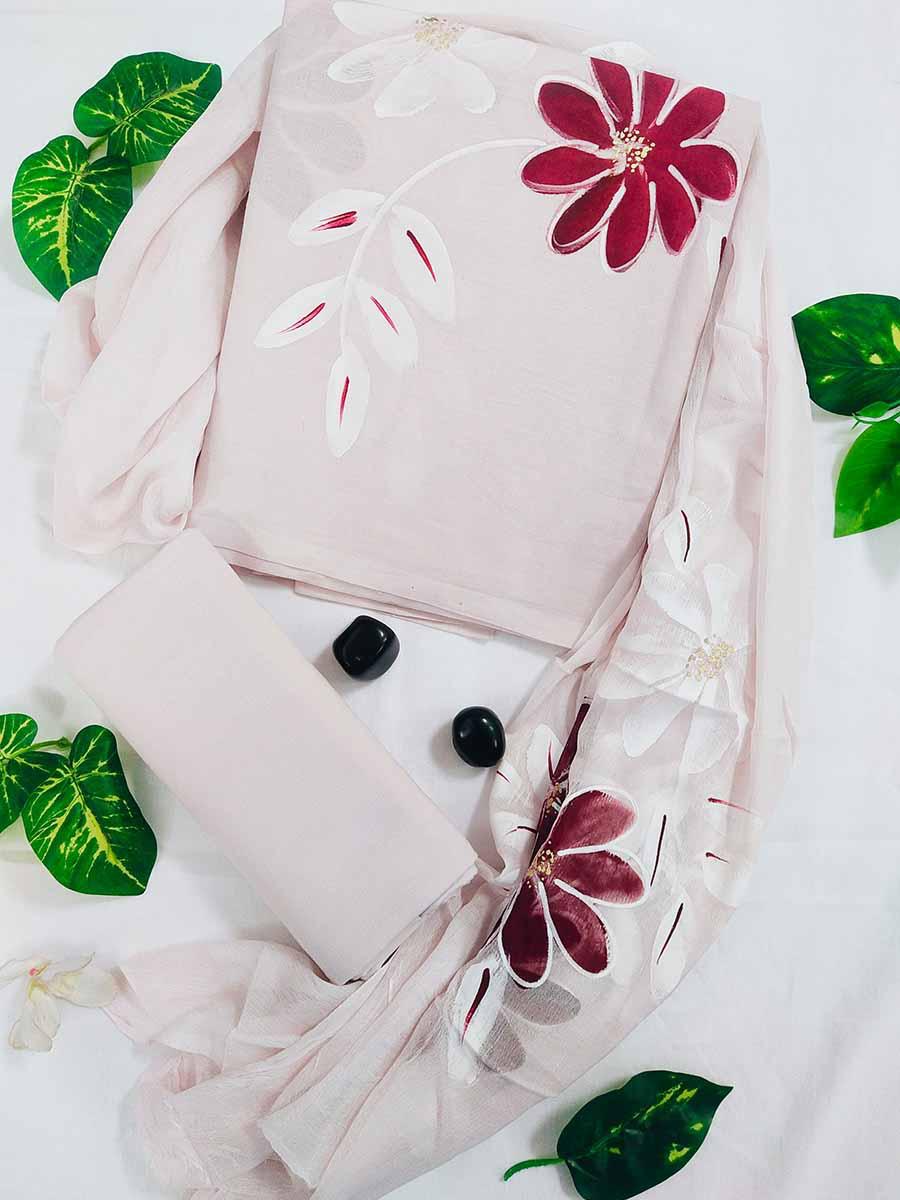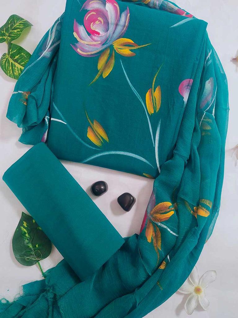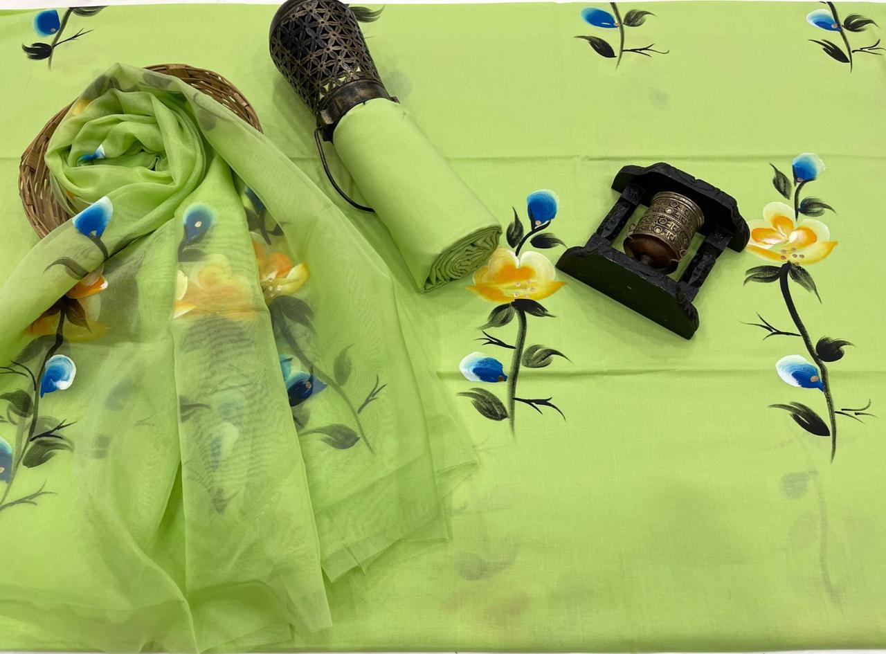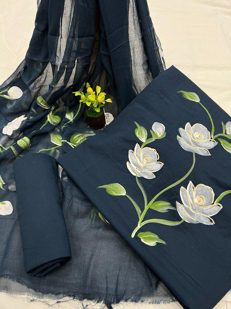 This Hand painted Suit materials with Kota Doria Dupatta is beautifully hand painted