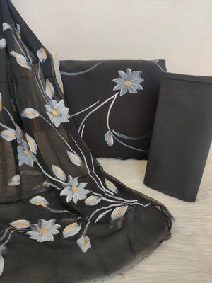 Hand painted Suit materials with Kota Doria Dupatta Black,Yellow,Green