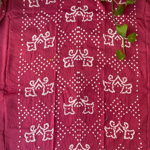 This hand made Bandhani salwar suit fabric is elegant and comfortable. It has beautiful hand tied bandana design on the entire fabric. The dupatta is Mul Cotton with small border. This suit fabric is ideal for all casual events, work and small occasions.