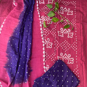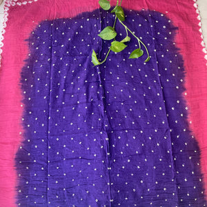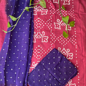 Hand Tied Bandhani Unstitched Salwar Suit Fabric - Pink and Purple