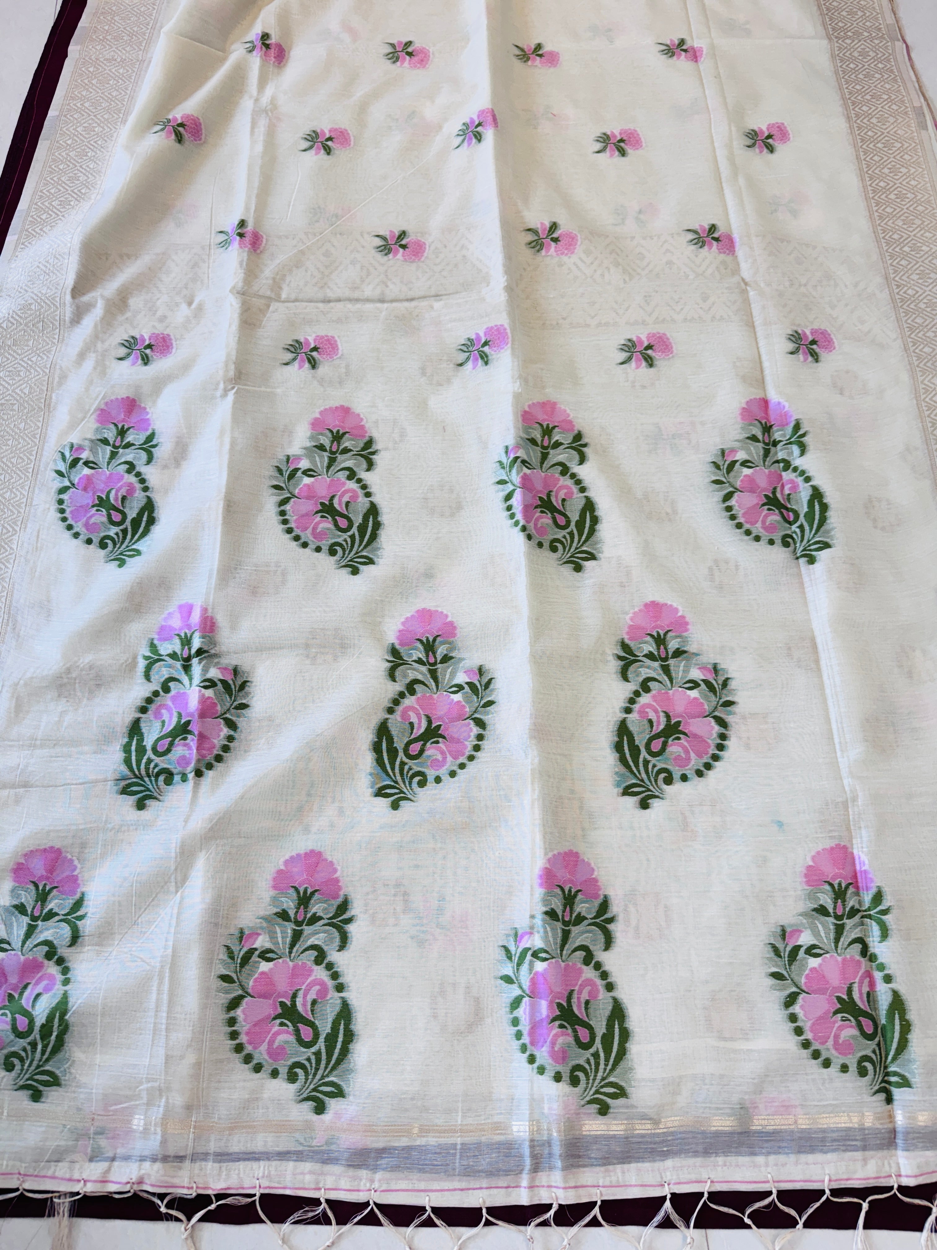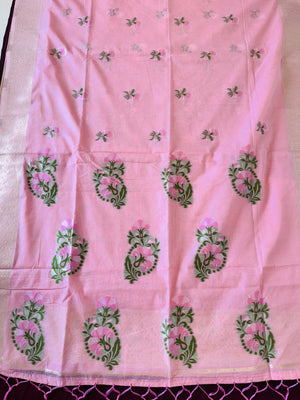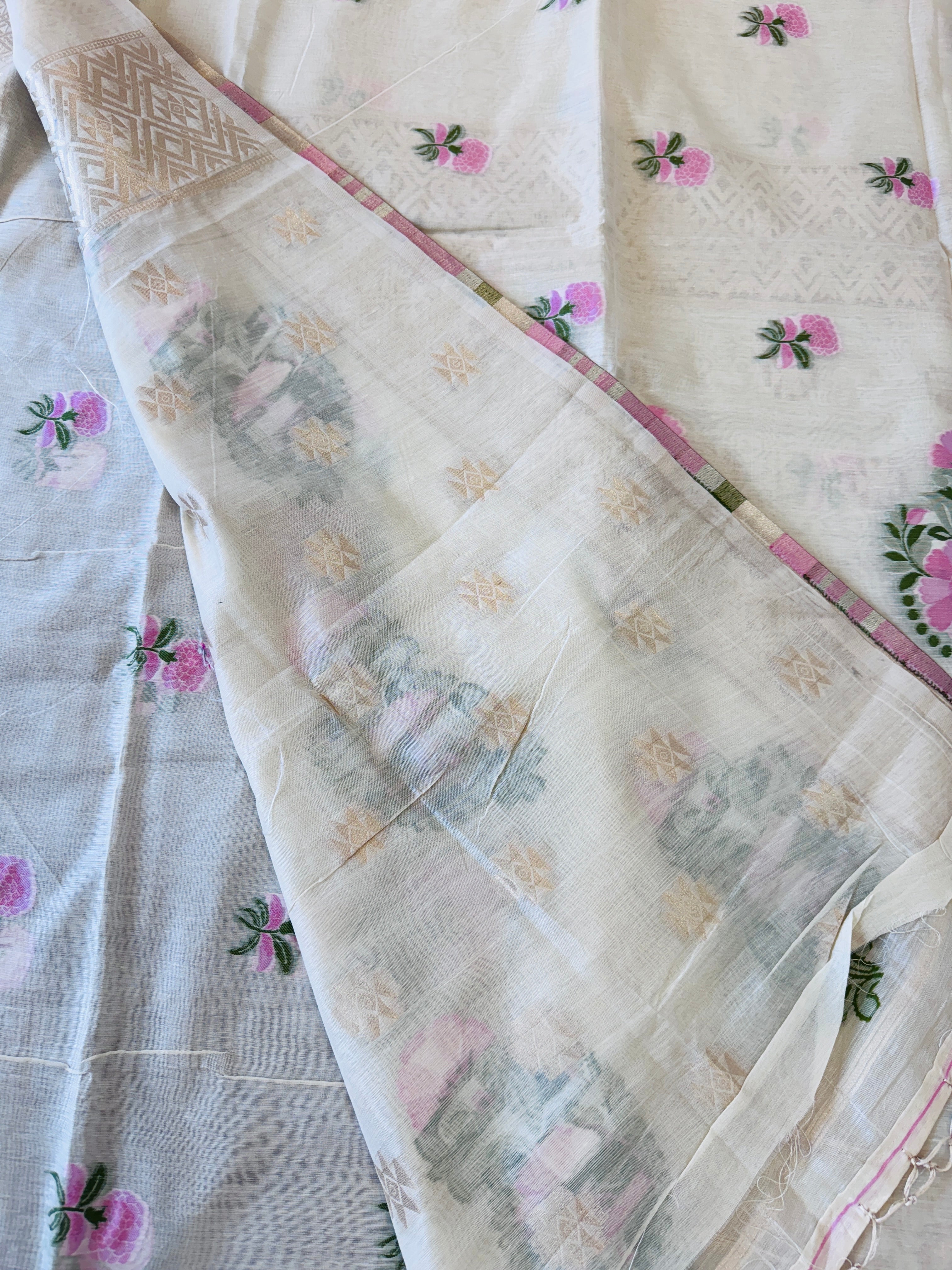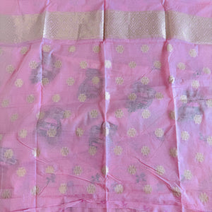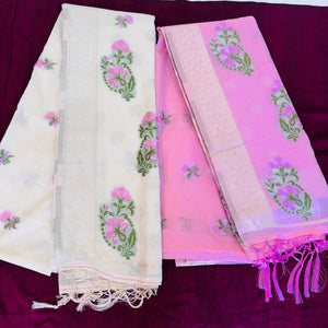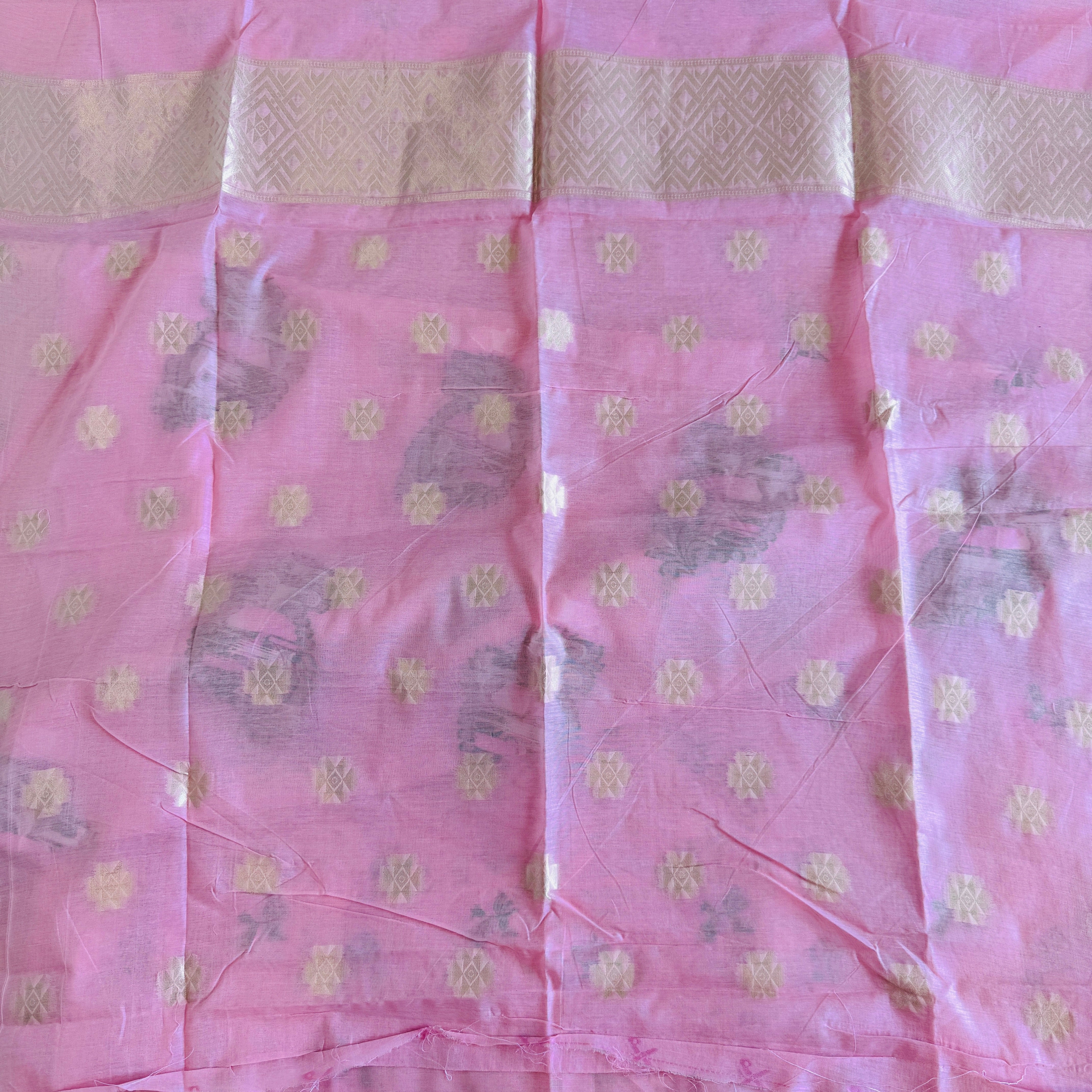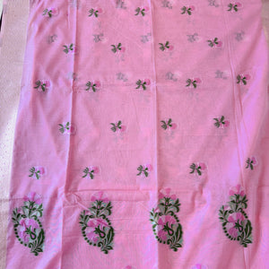 Hand Woven and Handloom Pure Muslin Munga Cotton Silk Jamdani With Design - White, Pink,