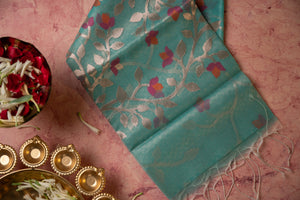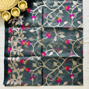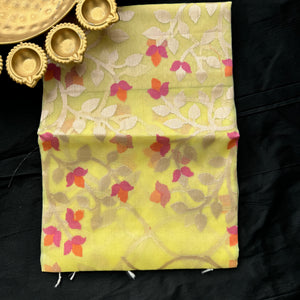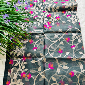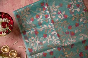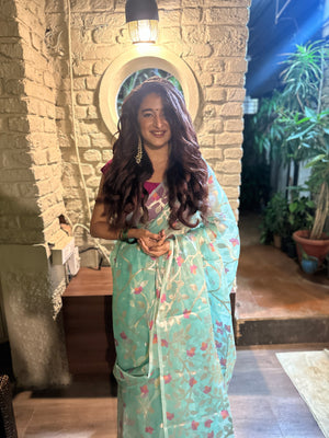 This eye-catching soft muslin jamdani saree is beautifully woven by the rural artisans. It is very comfortable, lightweight and elegant. The colors are so pleasing and attractive, that sporting it for a traditional event or formal function will be perfect.