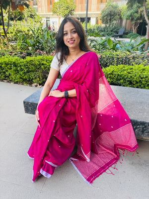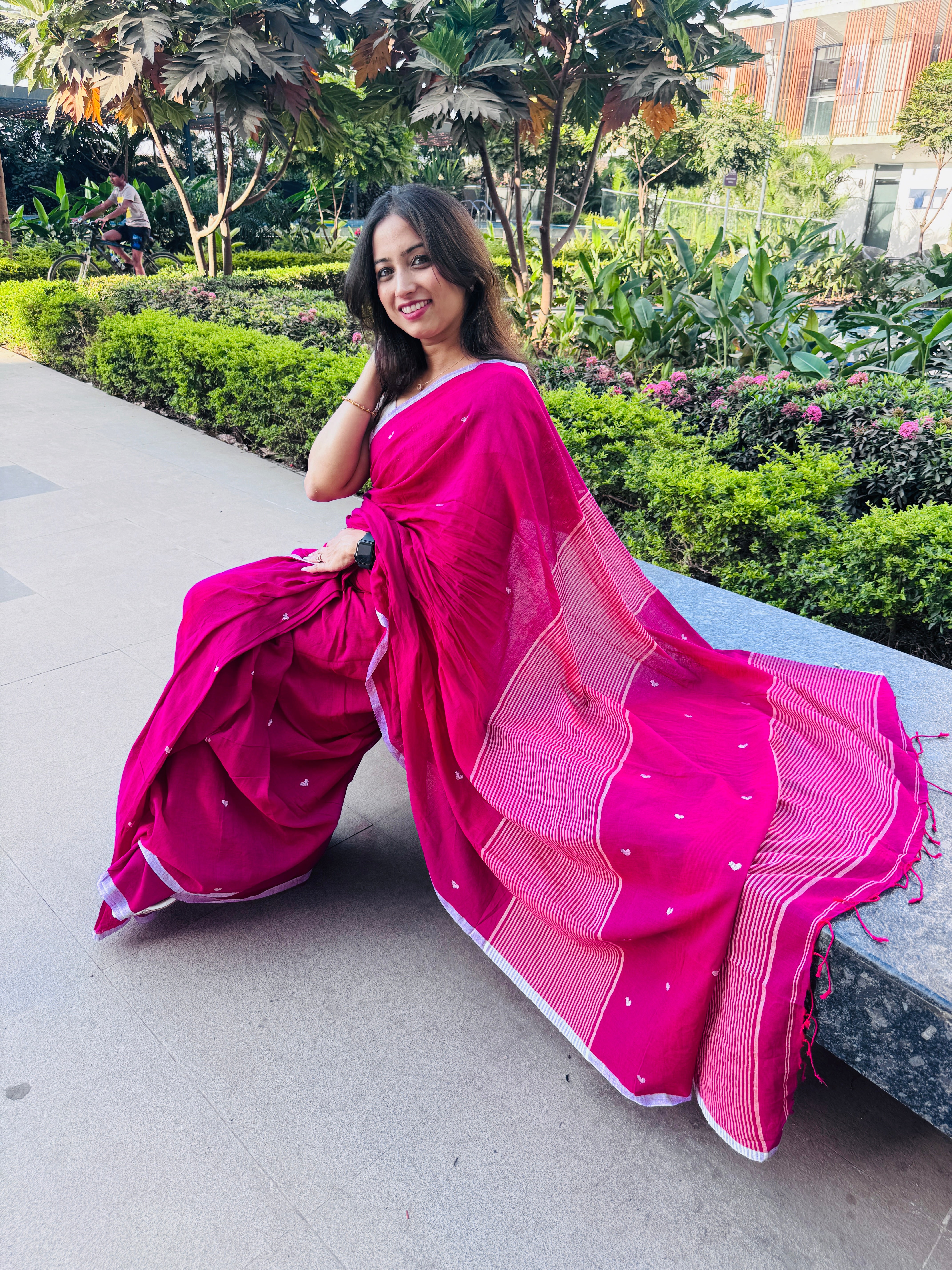 Handloom Mul Cotton woven Jamdani - Magenta Pink