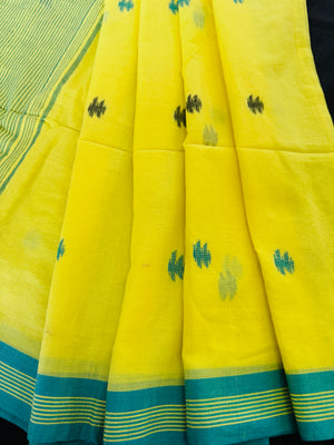 Handloom Mul Cotton woven Jamdani- Yellow