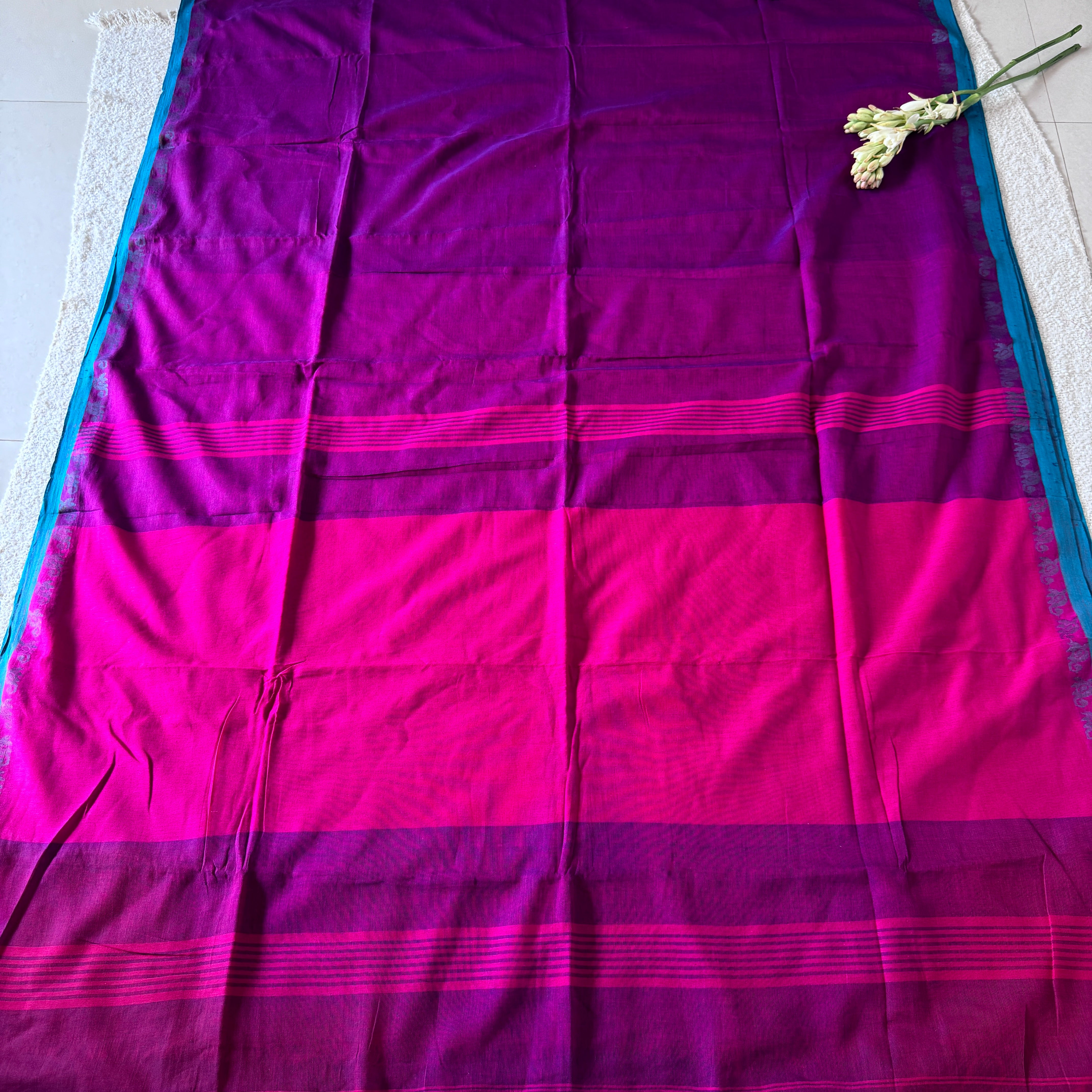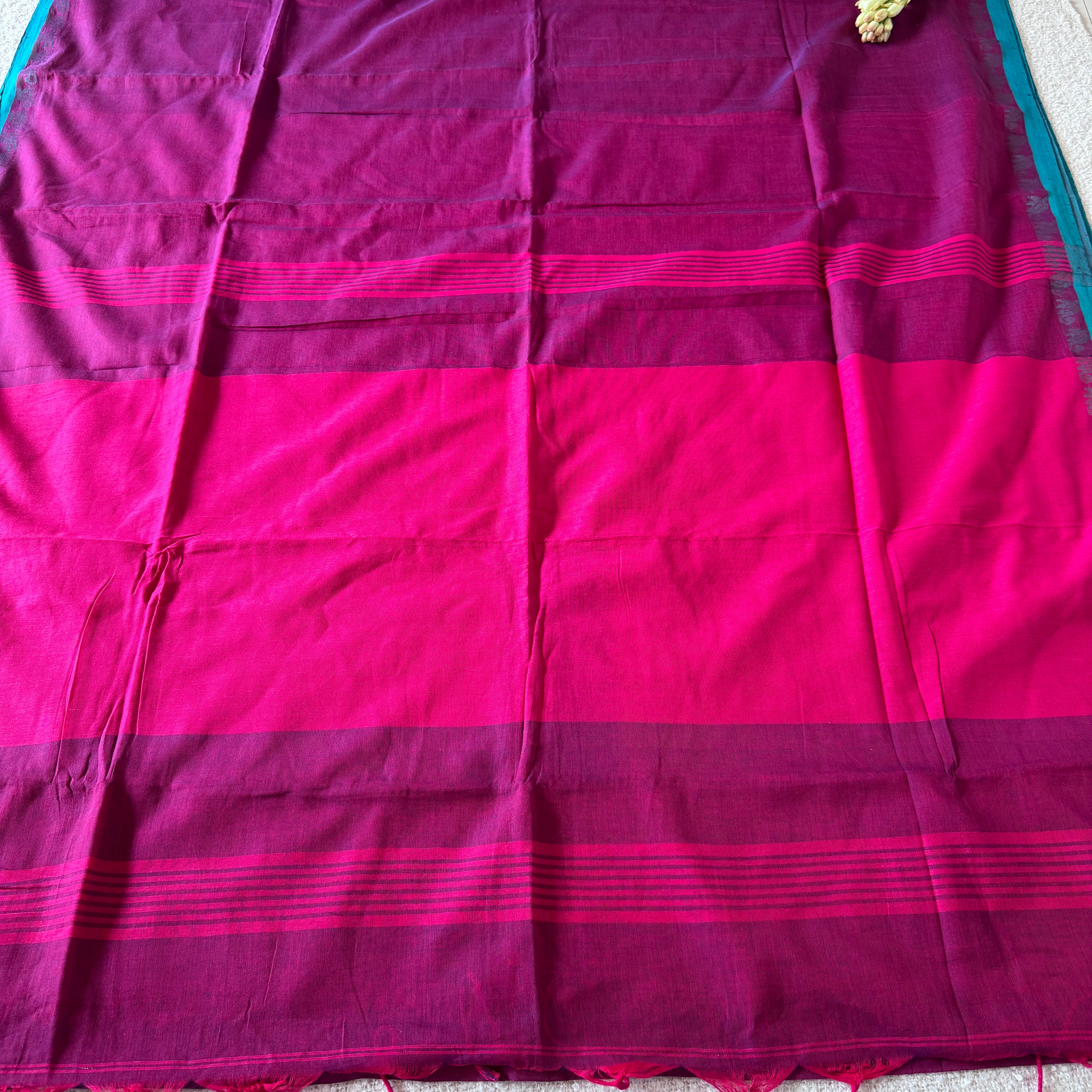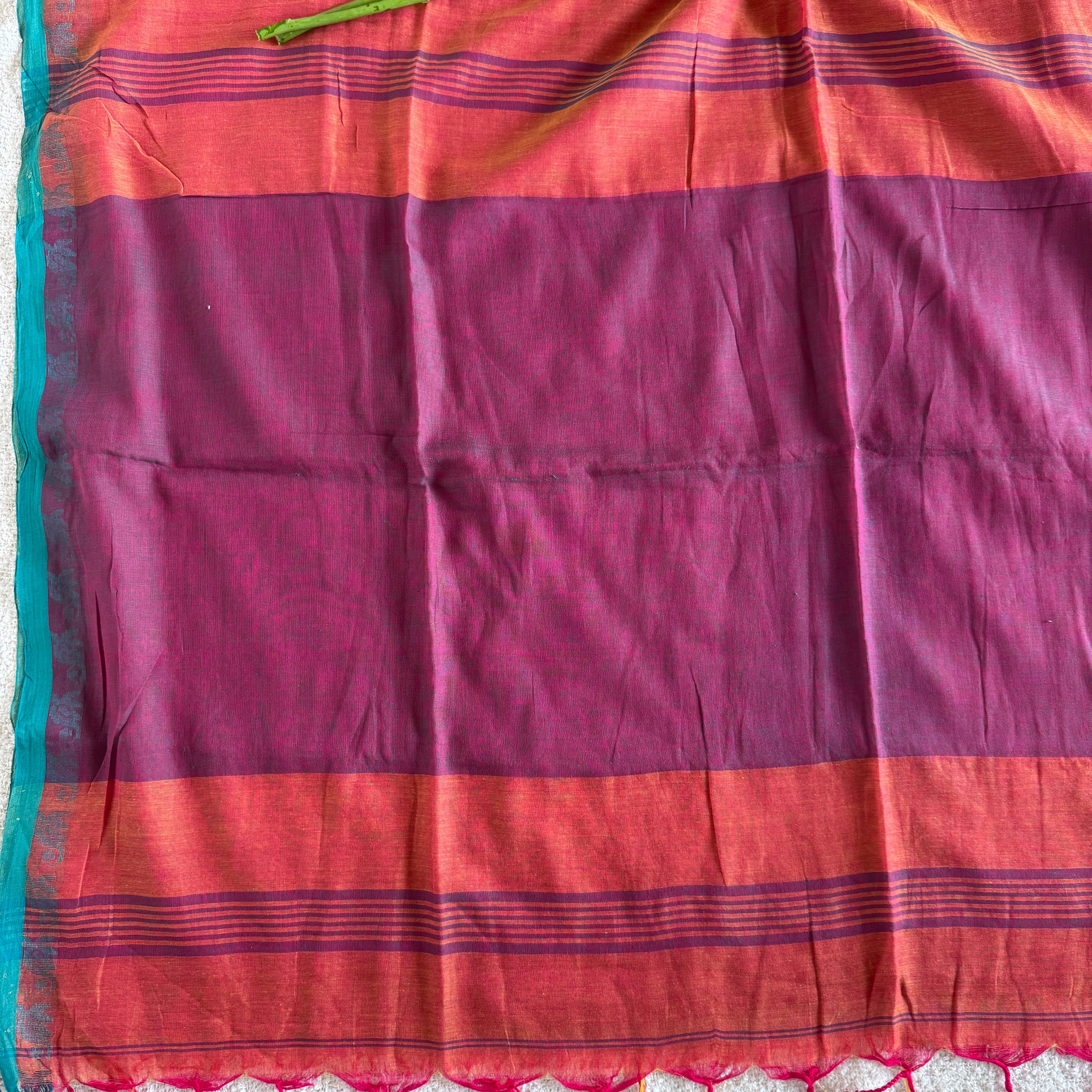 Handloom Mul Cotton woven - Orange, Magenta, Pink, White, Light Pista