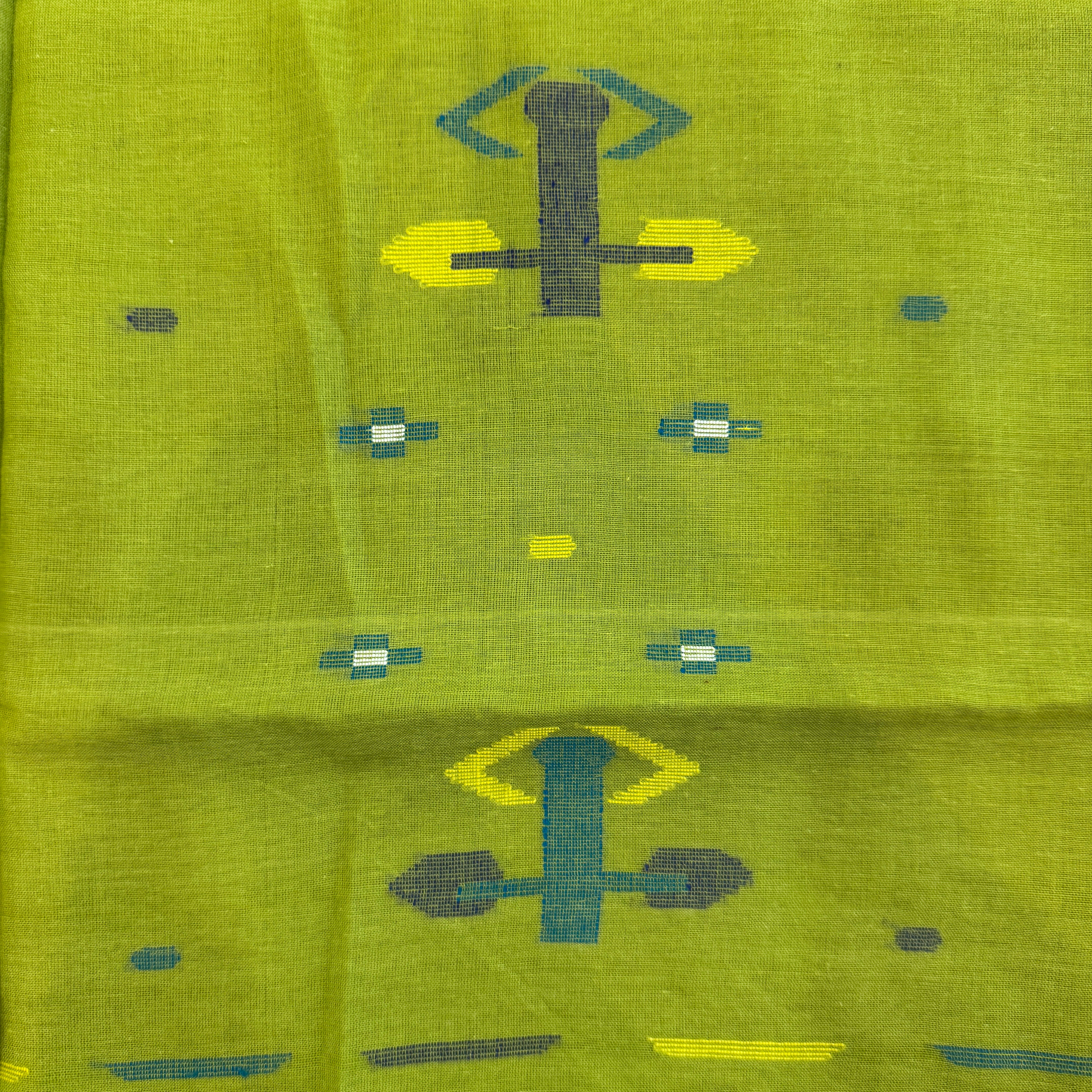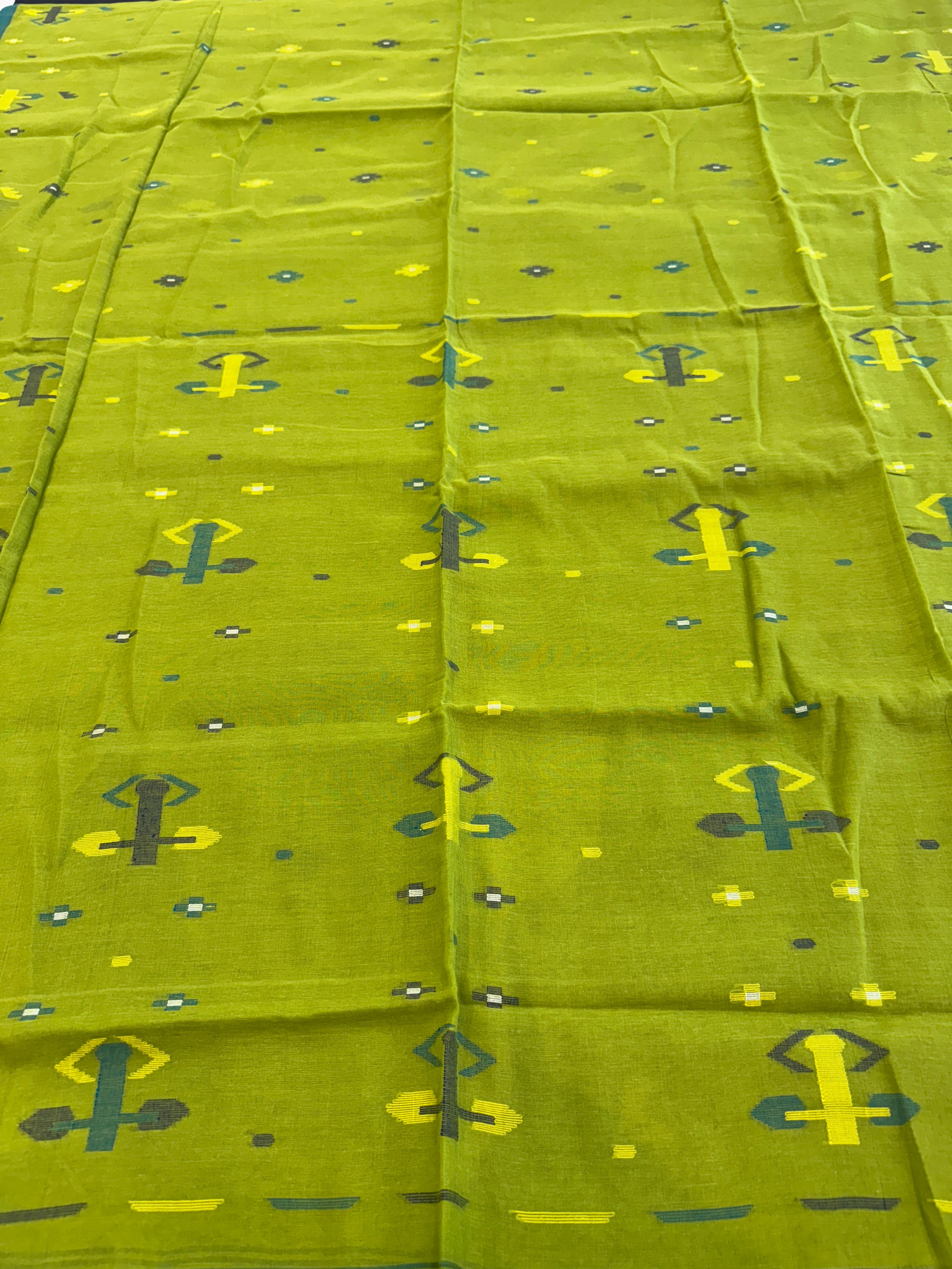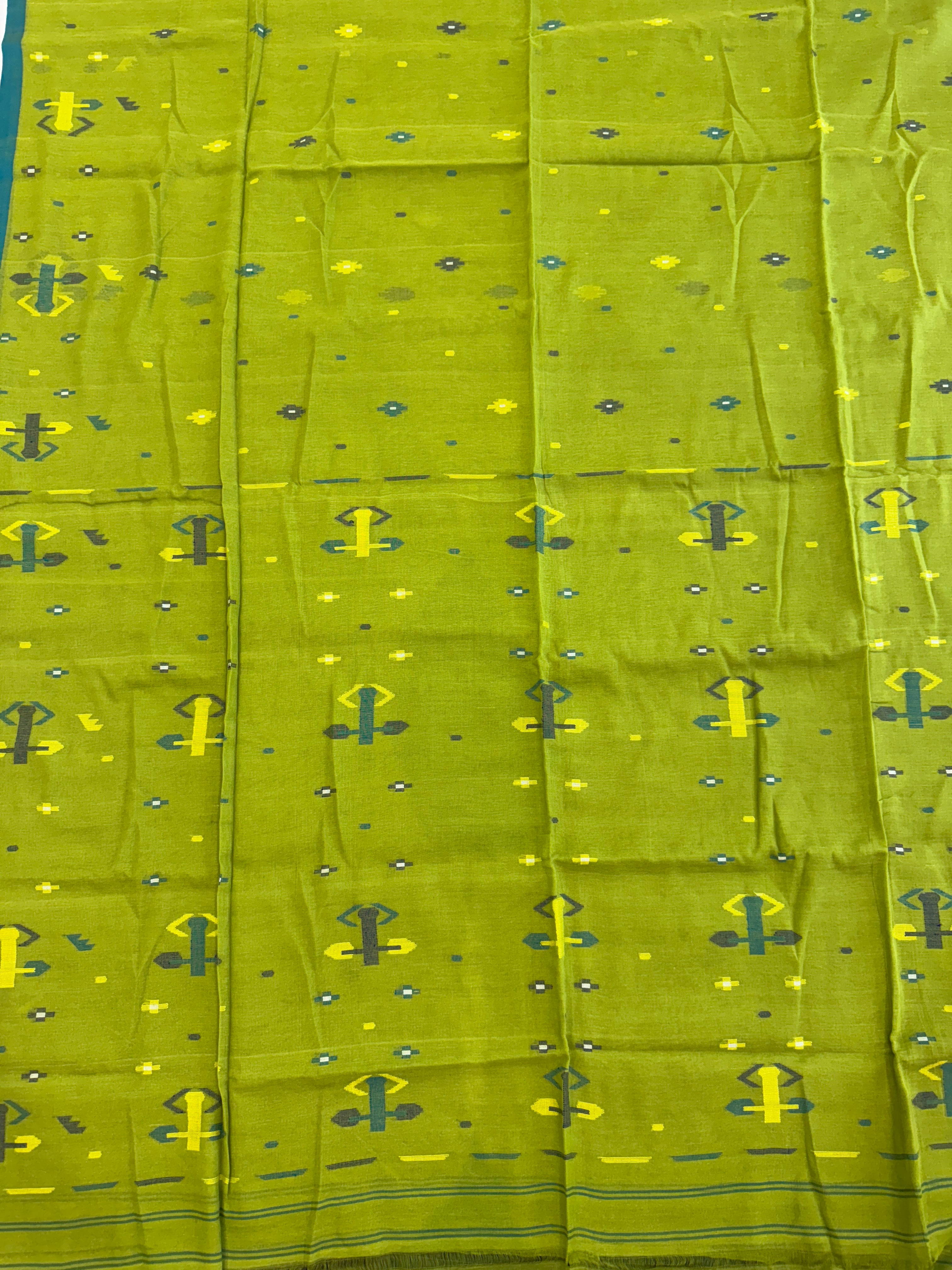 This eye-catching soft handloom jamdani saree is beautifully woven by the rural artisans. It is very comfortable, lightweight and elegant. The colors are so pleasing and attractive, that sporting it for a traditional event or formal function will be perfect.