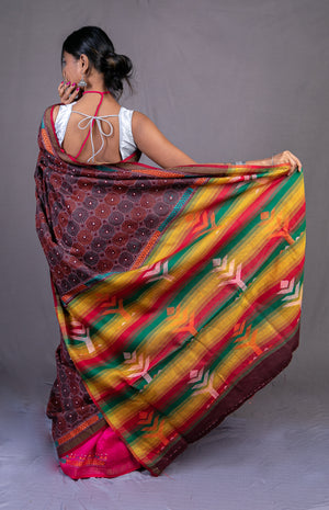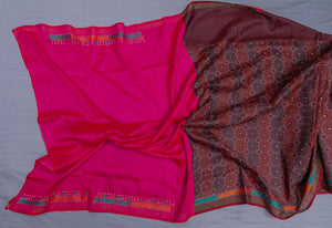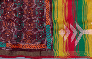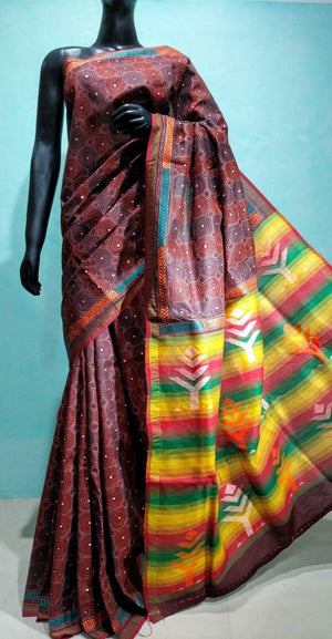 Jamdani Silk Kantha embroidery Saree- Brownish Red
