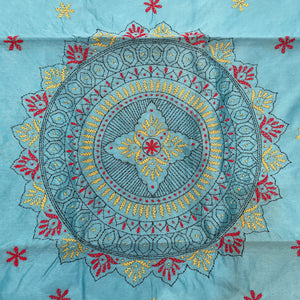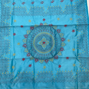 Kantha Hand Embroidered Work Saree Assam Silk (cotton silk) - Blue