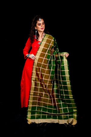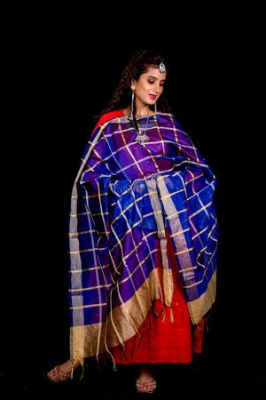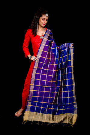 Inspire those around you by sporting this kheeja cotton dupatta. It has beautiful zari checks and a broad border. Clubbing it with your attire is sure to give you a holistic look. This cotton dupatta is ideal for everyday wear or small get togethers.