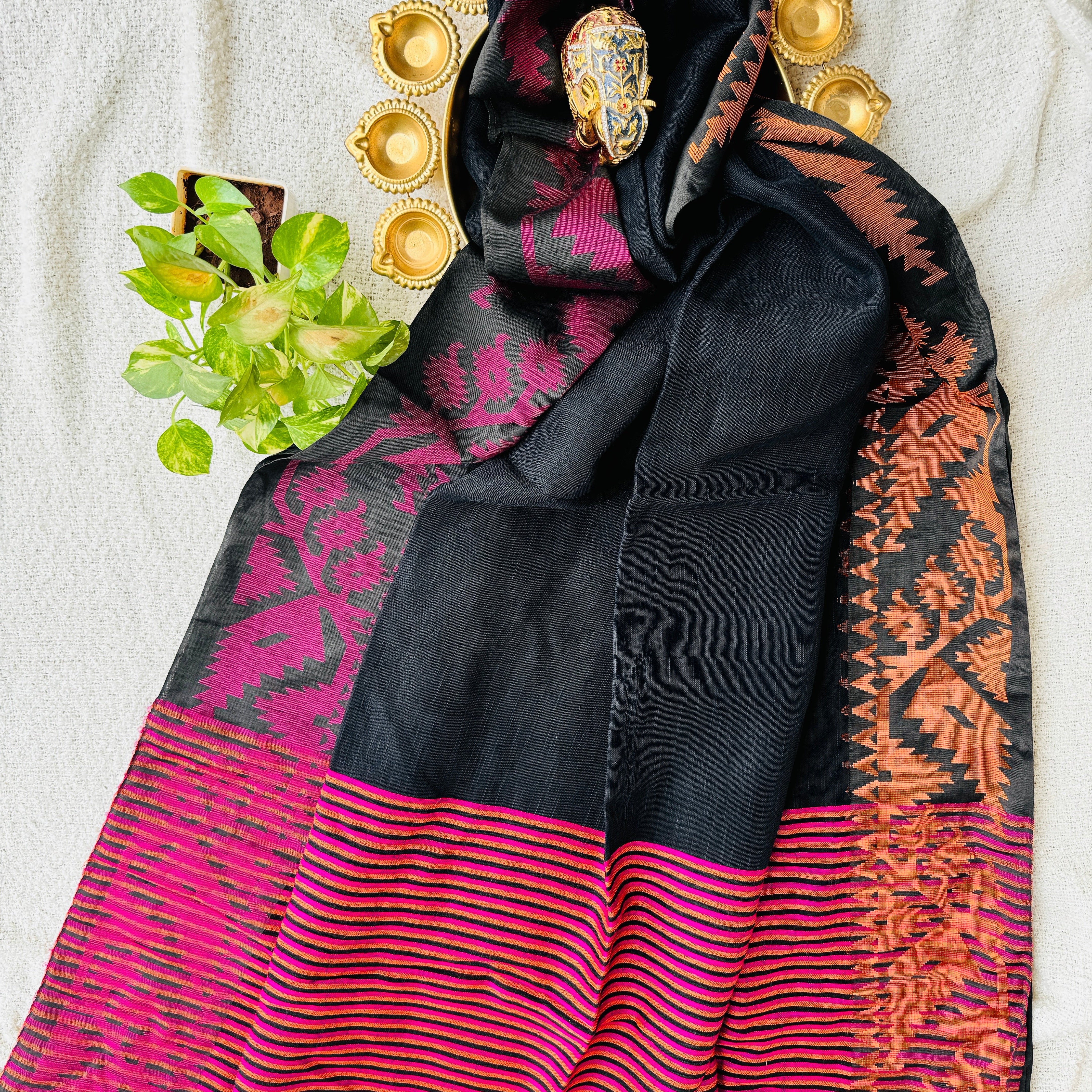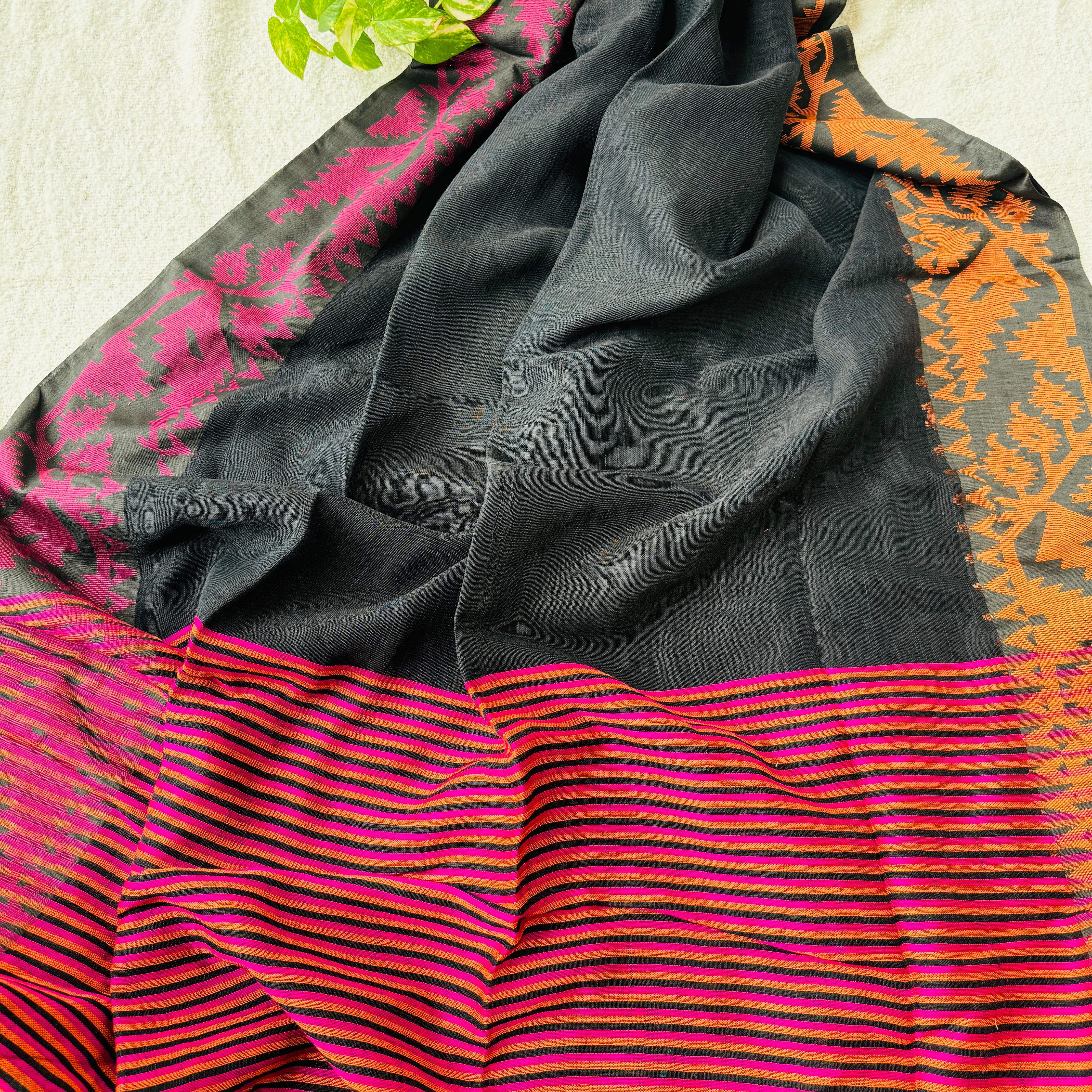 Linen by Linen With Contrast Border - Navy Blue, Black, Green