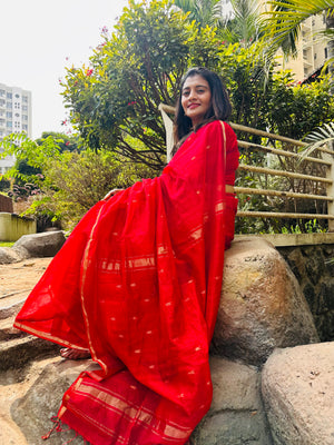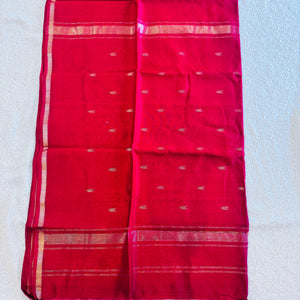 Maheshwari Handloom handwoven cotton silk Saree Pink Red