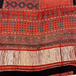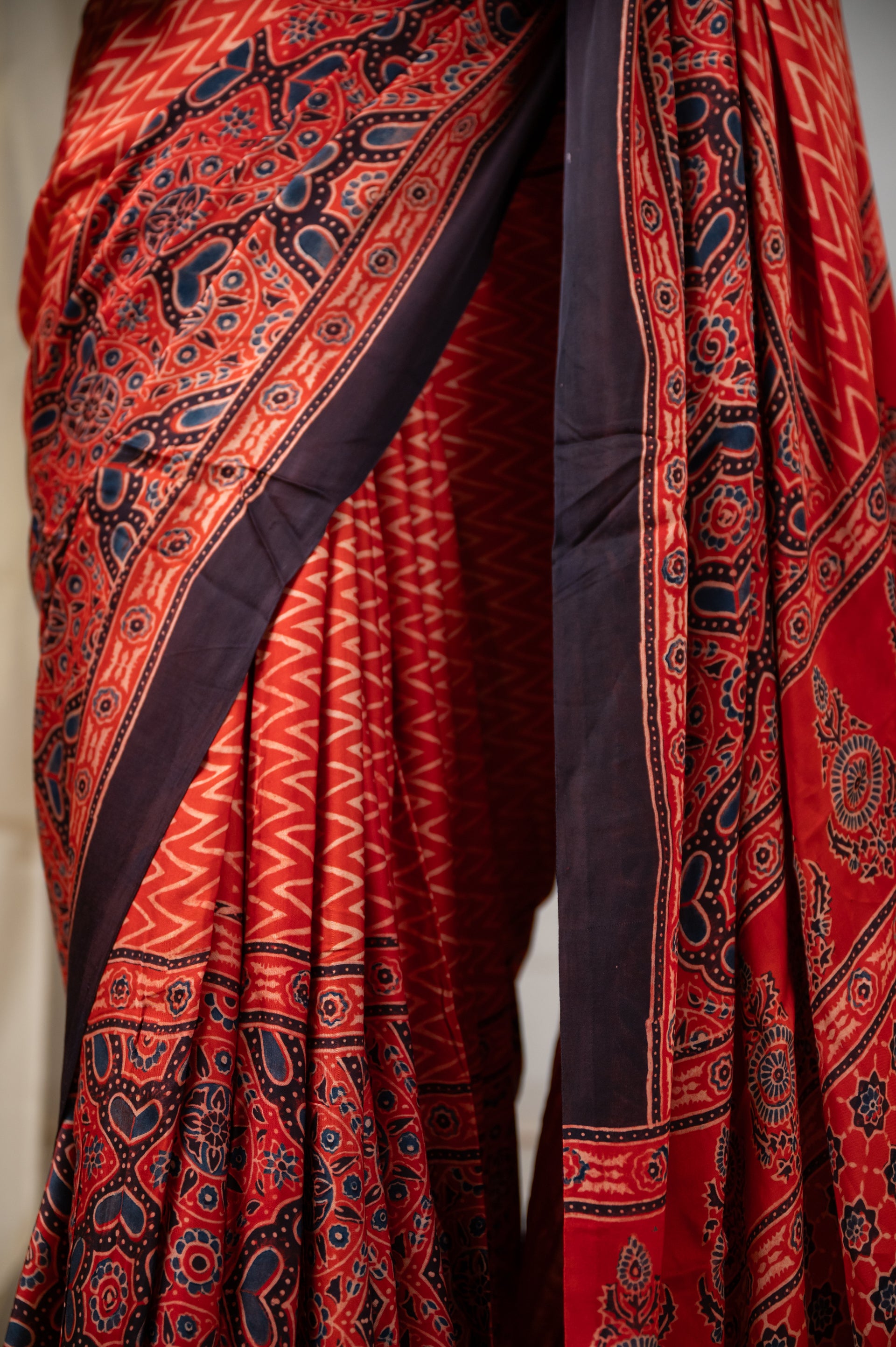 | Fabric | Modal Silk, Zari/Lagdi Pallu, Ajrakh Print |