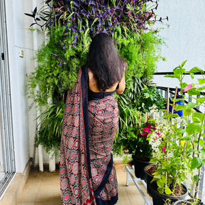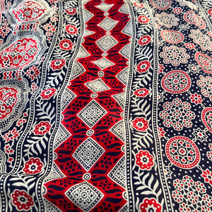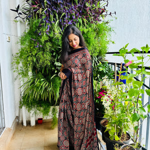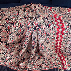 | Fabric | Modal Silk, Ajrakh Print With Gharchola Pallu |