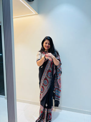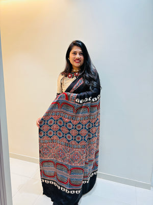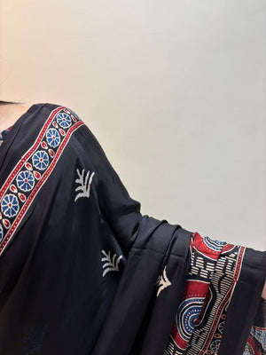 Modal Silk Ajrakh Saree With Natural Dyes- Black