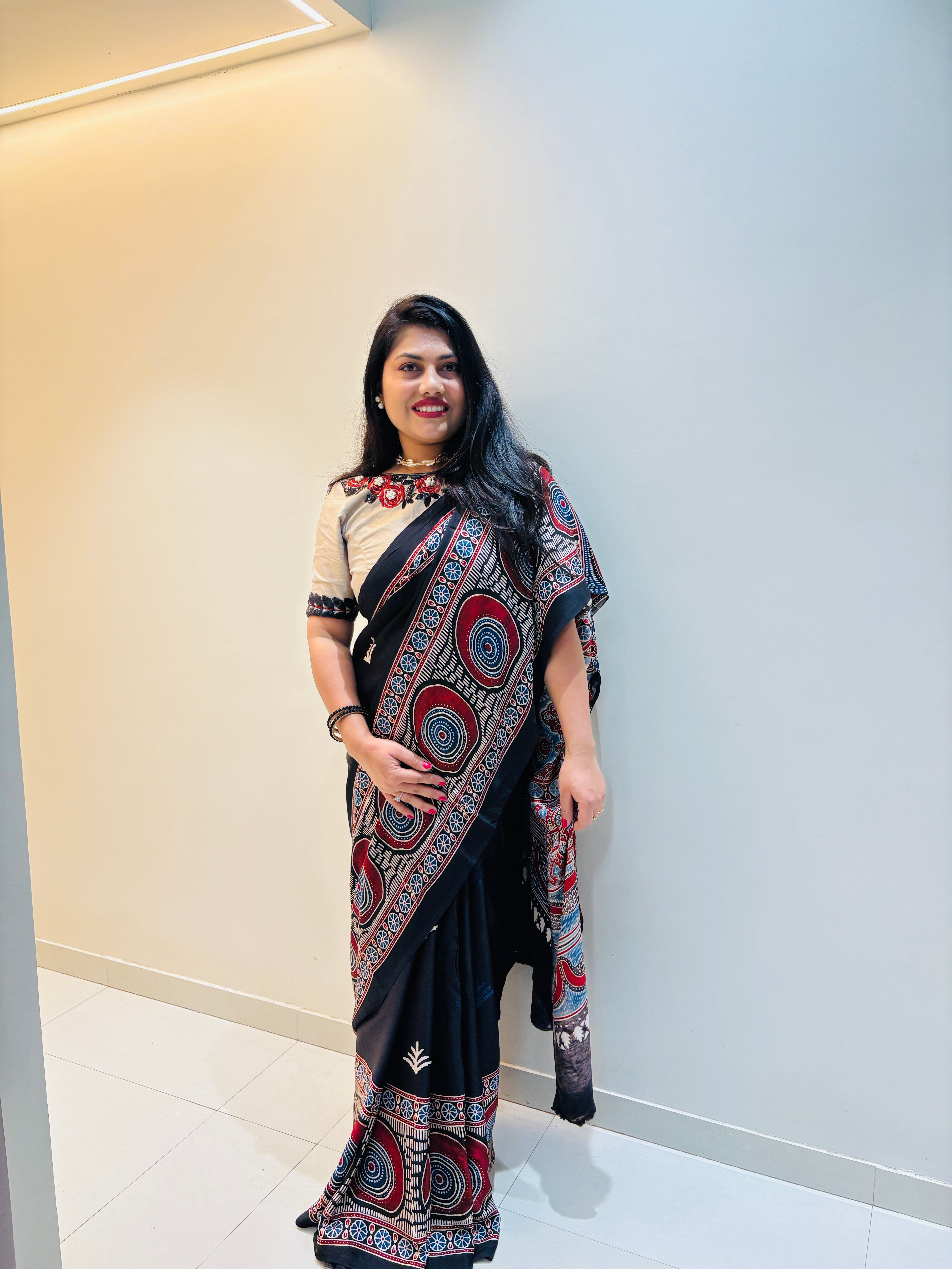 | Fabric | Modal Silk, Ajrakh Print |