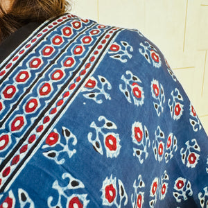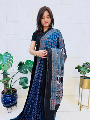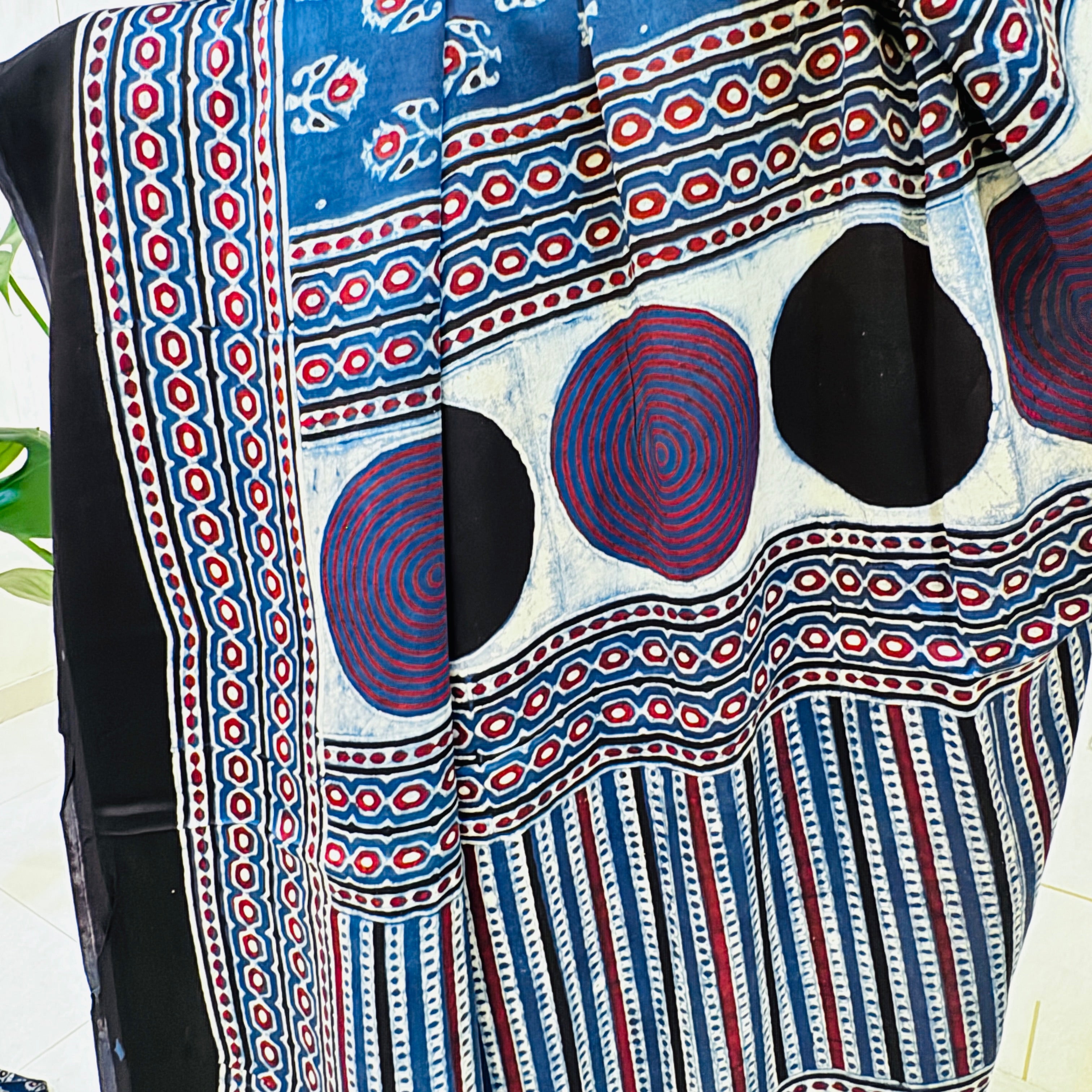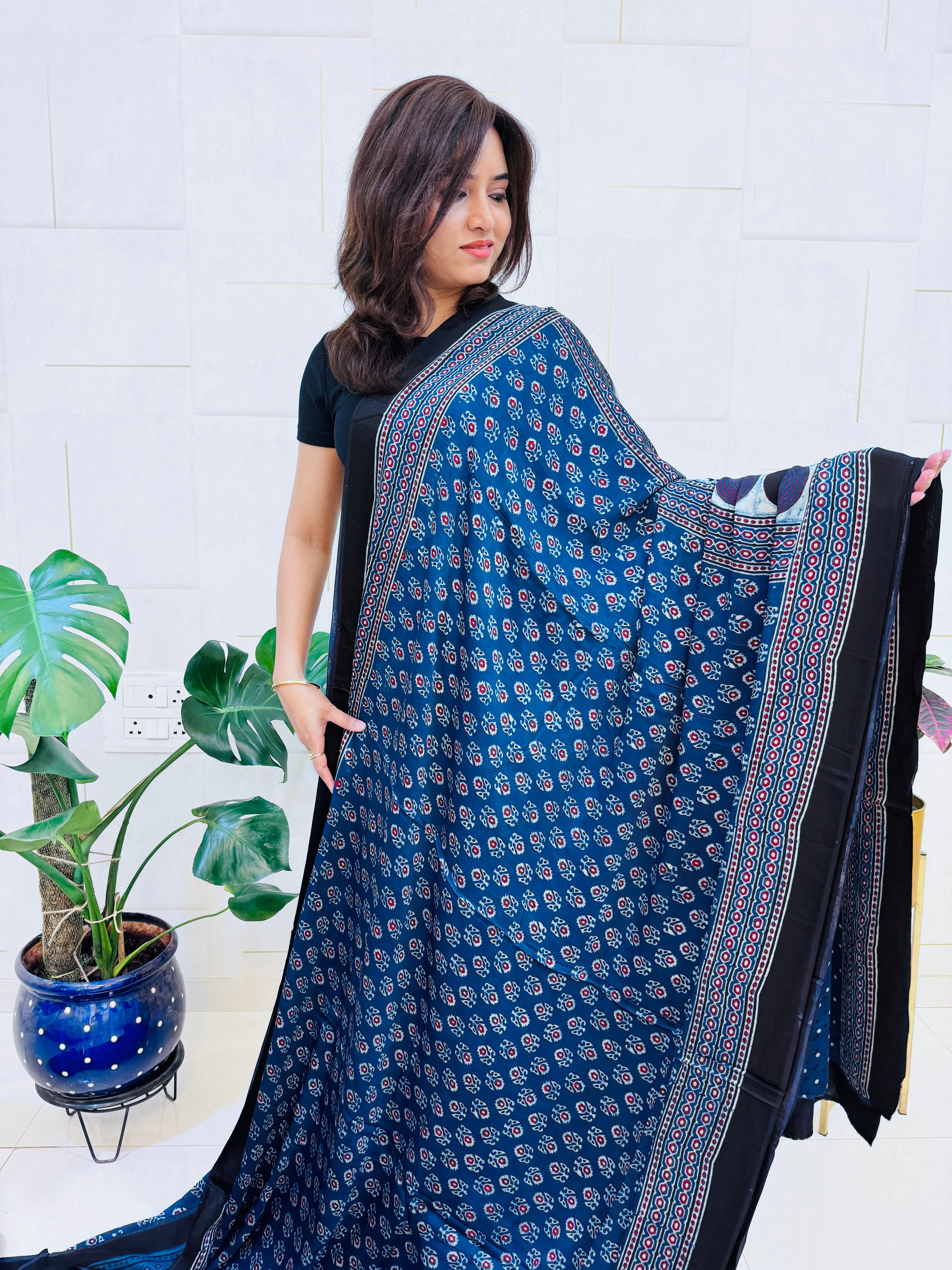 Modal Silk Ajrakh Saree With Natural Dyes - Indigo