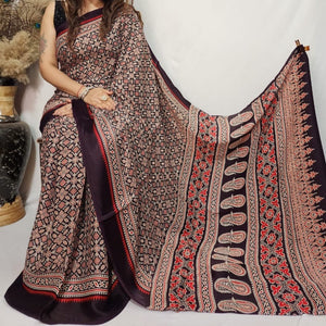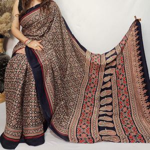 | Fabric | Modal Silk Mashroo Mix, Ajrakh Print |