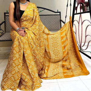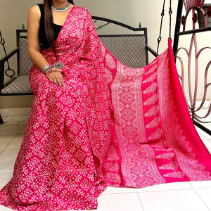 Modal Silk Mashroo Mix Ajrakh Saree With Natural Dyes - Blue, Maroon, Mustard Yellow, Magenta Pink,Bottle Green, Brown, Pink.