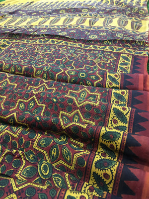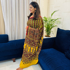 Modal Silk Ajrakh Saree With Natural Dyes - Yellow