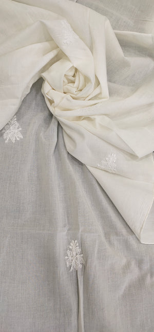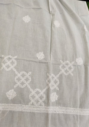 Mul Cotton Dyeable Chikankari Dupatta - White