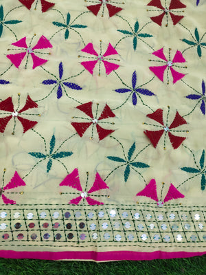 Description: A lightweight georgette dupatta with intricate floral hand embroidery, keeping it stylish and simple with sequins on the border. Pair them with any solid kurta or dress for a charming ethnic wear.