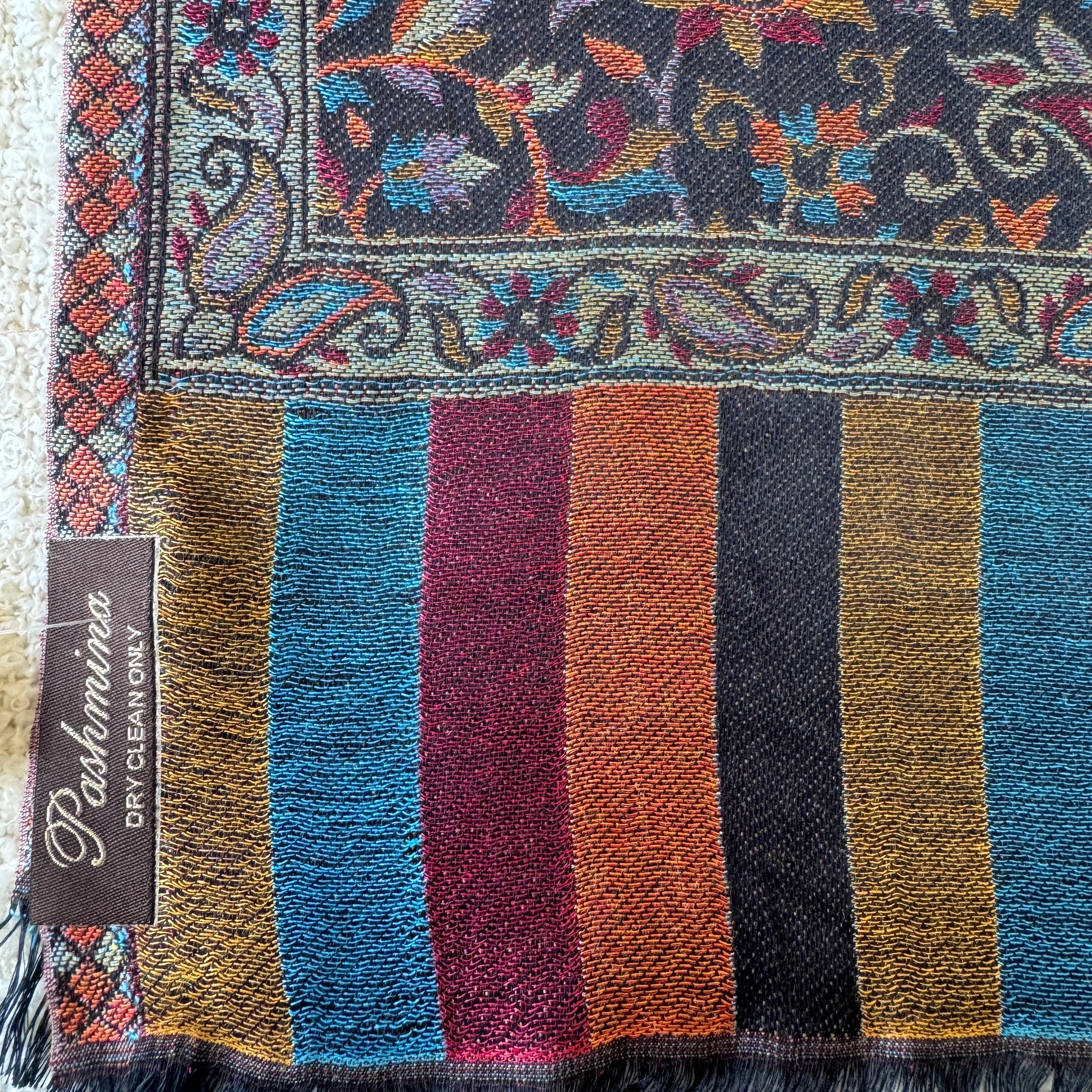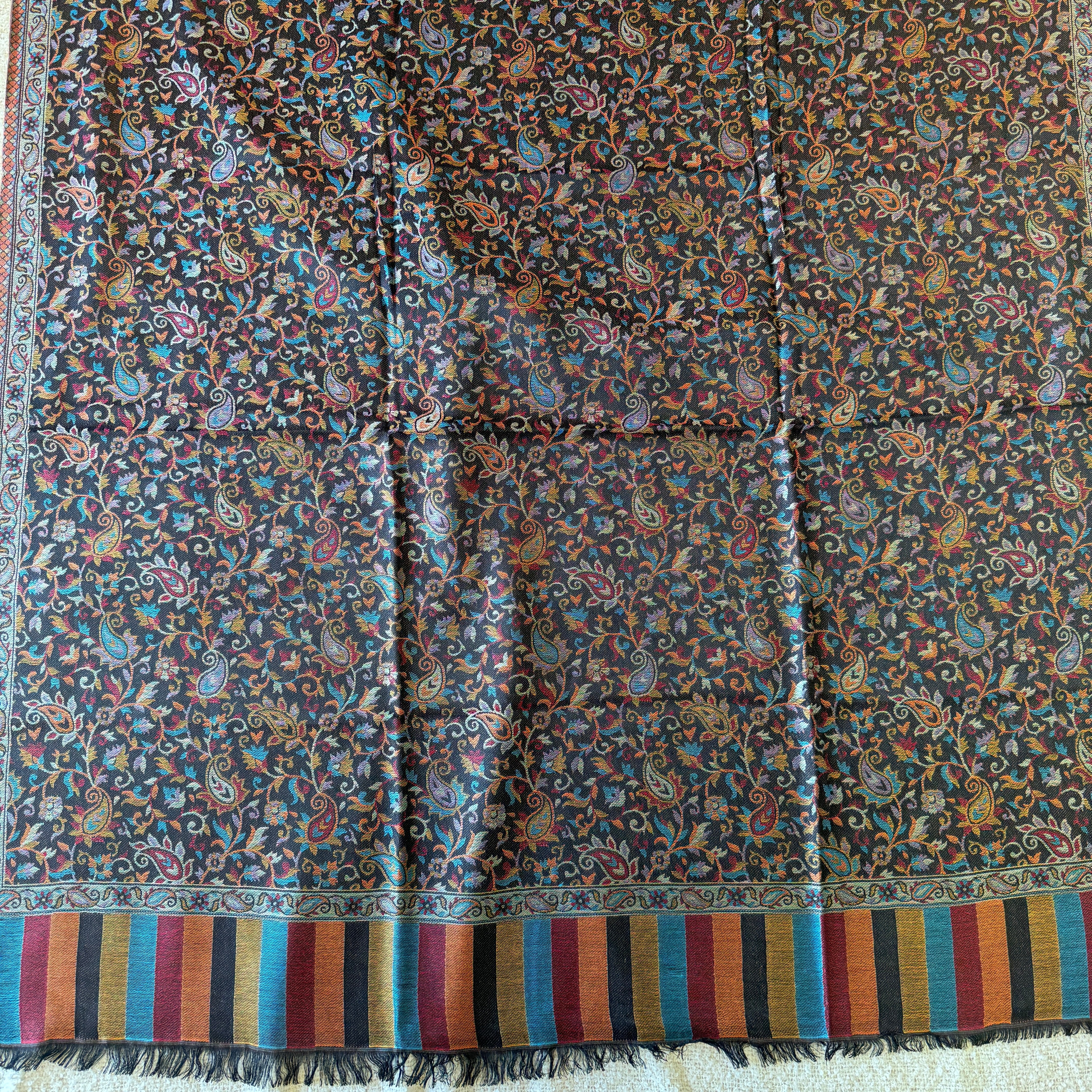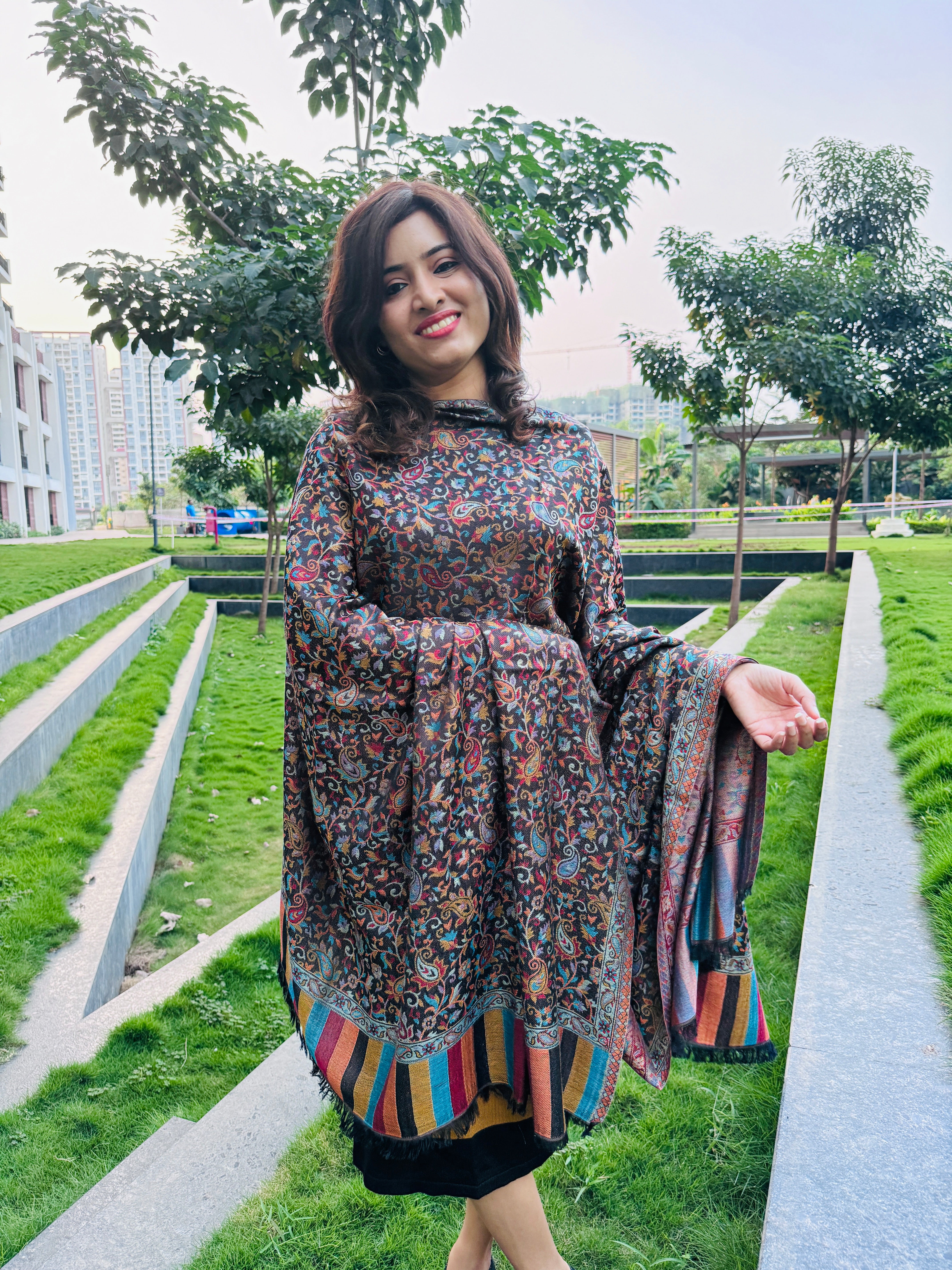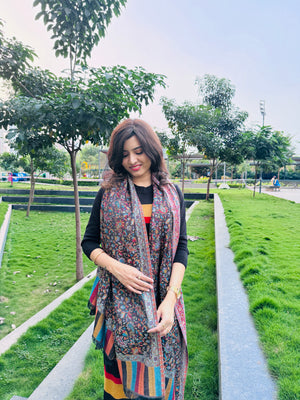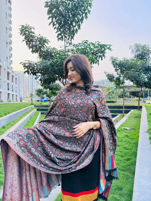 This pure pashmina woven shawl is a perfect winter warmer. It is black in color with design woven in it. The stole is ideal for all types of occasions. It is attractive and stylish, sure to take your outfit a notch higher.