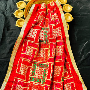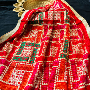 Phulkari Machine-Embroidered Chinnon Dupatta - Red