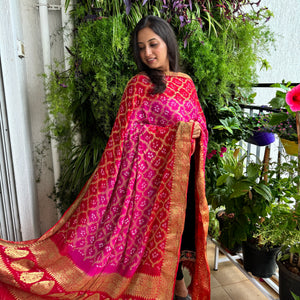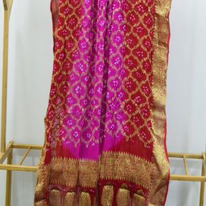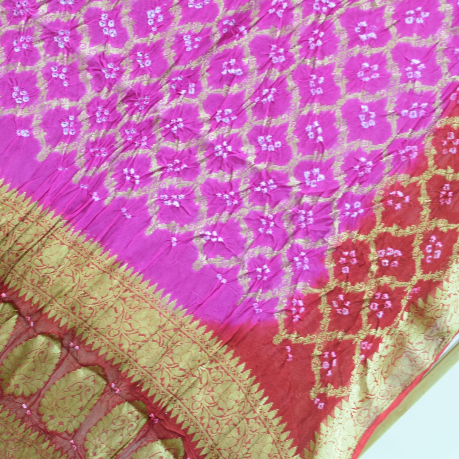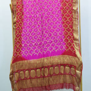 Pure Georgette Banarasi With Fine Bandhej Work Dupatta - Pink and Red